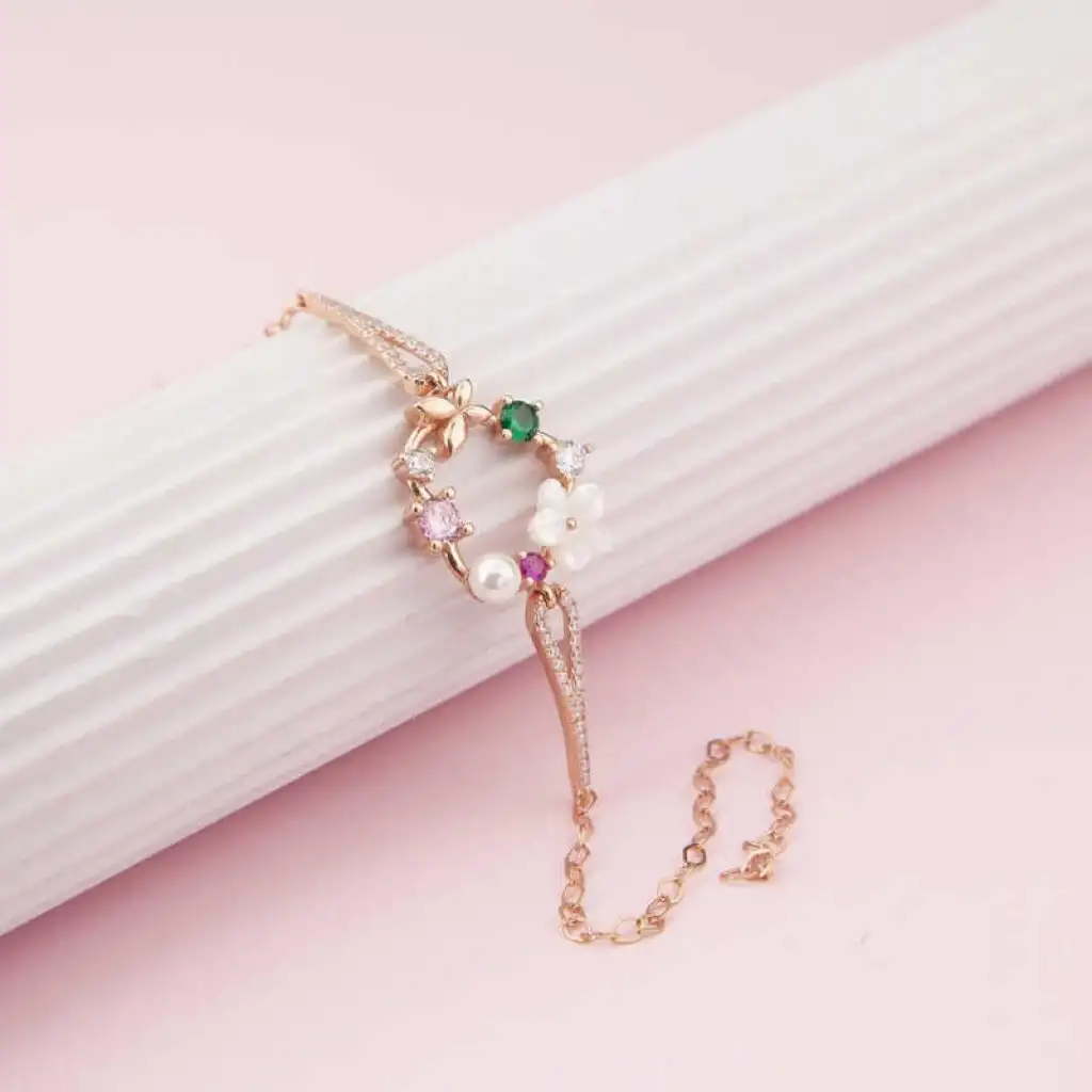 Gümüş Rose Kalp Manolya Çiçeği Kelebek Kadın Bileklik