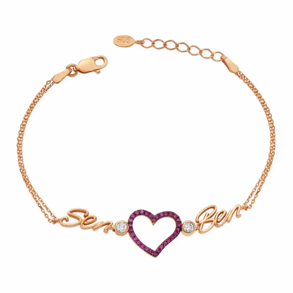 Gümüş Rose Kalpli Sen Ben Bayan Bileklik