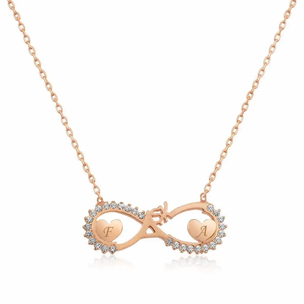 Sonsuza kadar sürecek aşkı anlatmanın en güzel yollarından biri de sevgiliye sonsuzluk sembollü gümüş takılar hediye etmektir. Sonsuzluk sembolü ebedi aşkın ve sadakatin işareti olarak evlilik yıl dönümü veya sevgililer günü gibi özel günlerde alınabilecek anlamlı hediyelerinden biri olabilecektir. Kalpli sonsuz aşk kolye 925 ayar gümüşten imal edilmiştir. Gümüş üzerine rose kaplama yapılmıştır. Rose kaplama yapılan gümüş bayan kolye modelleri parlaklığını uzun süre muhafaza eder ve oksitlenmesi gecikir. Kolye üzerinde bulunan taşlar zirkondur. Gümüş kalpli sonsuz aşk bayan kolye tamamı el emeği ile üretilmiştir. Tüm bayan gümüş kolye modellerinde olduğu gibi gümüş kalpli sonsuz aşk kolye de el emeği ile üretilmiştir. Gümüş ve değerli taşlar nedeniyle belirtilen ürün ağırlığında ± %10 sapma olabilmektedir.
