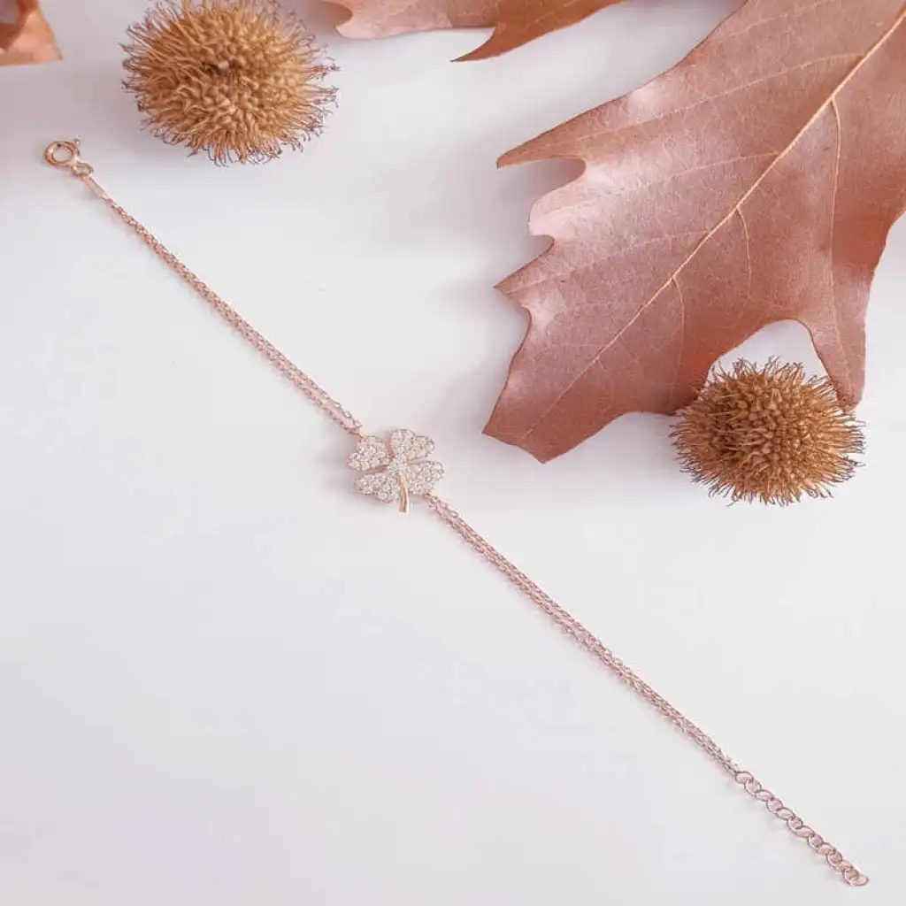Gümüş Rose Kalpli Yonca Kadın Bileklik