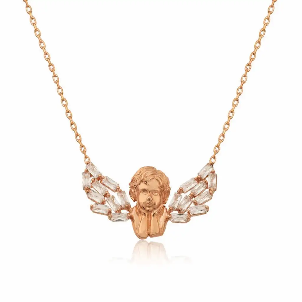Gümüş Rose Kanatlı Melek Kolye