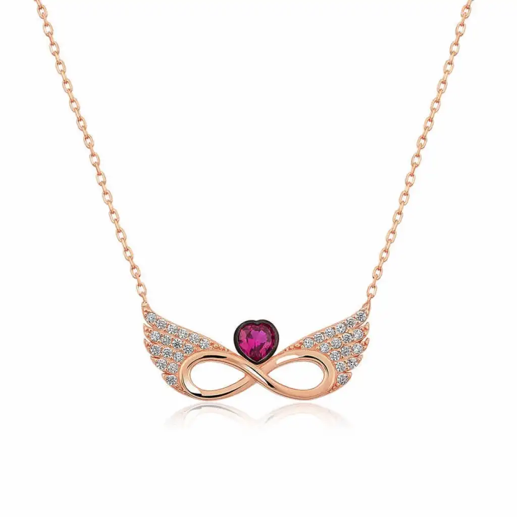 Melekler saflığın ve temizliğin simgeleridir. Bu nedenle melek kanatlı sonsuz kalp kolye hediye edilen kişiye, melekler kadar saf kalpli aşkın sonsuza kadar süreceği mesajı verilmek istenmektedir. Bu özel melek kanatlı sonsuz kalp kolye 925 ayar gümüşten imal edilmiştir. Gümüş üzerine rose kaplama yapılmıştır. Rose kaplama yapılan gümüş kolyeler parlaklığını uzun süre muhafaza eder ve oksitlenmesi gecikir. Tüm bayan gümüş kolyelerde olduğu gibi gümüş kanatlı sonsuz kalp kolye de el emeği ile üretilmiştir. Gümüş ve değerli taşlar nedeniyle belirtilen ürün ağırlığında ± %10 sapma olabilmektedir.