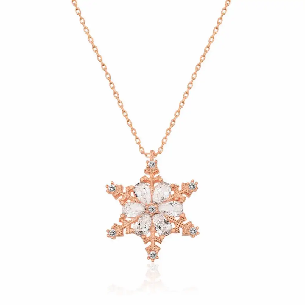 Gümüş Rose Kar Çiçeği Bayan Kolye