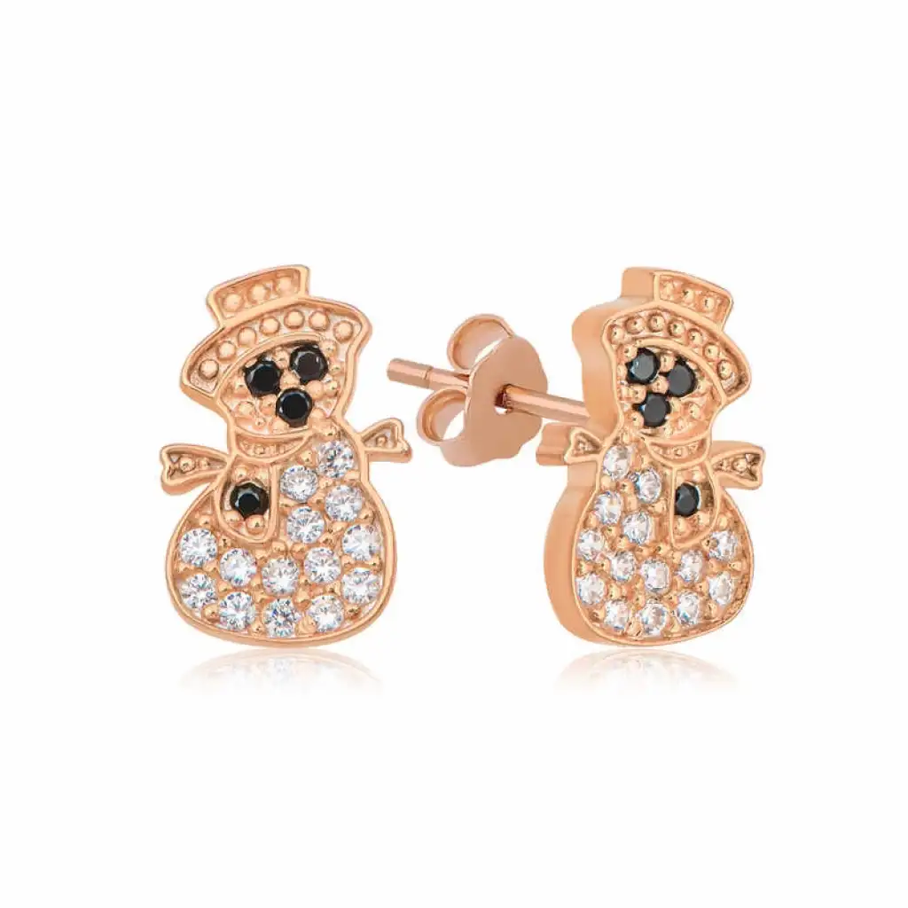 Kışımıza neşe katan kardan adamlar ile cıvıl cıvıl bu şık tasarım kadın küpeler sizler için tasarlandı. Küpe; doğum günü hediyesi, sevgililer günü hediyesi, Yılbaşı hediyesi veya annelere hediye olarak özel günlerde tercih edilebilecek mükemmel bir seçenektir. Kardan adam Küpe 925 ayar gümüşten imal edilmiştir. Gümüş üzerine rose kaplama yapılmıştır. Rose kaplama yapılan gümüş küpeler parlaklığını uzun süre muhafaza eder oksitlenmesi gecikir. Gümüş kadın küpeler üzerinde bulunan taşlar zirkondur. Tüm gümüş küpelerde olduğu gibi gümüş kardan adam kadın küpeside tamamı el emeği ile üretilmiştir . Gümüş ve değerli taşlar nedeniyle belirtilen ortalama ürün ağırlığında ± %10 sapma olabilmektedir.