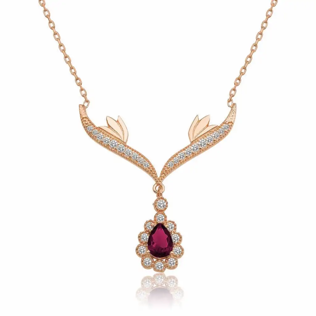 Kırmızı damla taşlı madalyon kolye her sezon rahatlıkla kullanılabilecek kolye modelleri arasında yer alıyor. Doğadan ilham alınarak tasarlanmış bu kolye ile sevdiğiniz kadına duyduğunuz aşkı ve tutkuyu en iyi şekilde ifade edebilirsiniz. Bu şık kolye; doğum günü hediyesi, sevgililer günü veya özel günlerde tercih edilebilecek mükemmel bir seçenektir. Kolye; 925 ayar gümüşten imal edilmiştir. Gümüş üzerine rose altın kaplama yapılmıştır. Diğer kolyelerde olduğu gibi gümüş kırmızı taşlı madalyon kolye de el emeği ile üretilmiştir. Gümüş ve değerli taşlar nedeniyle belirtilen ortalama ürün ağırlığında ± %10 sapma olabilmektedir.