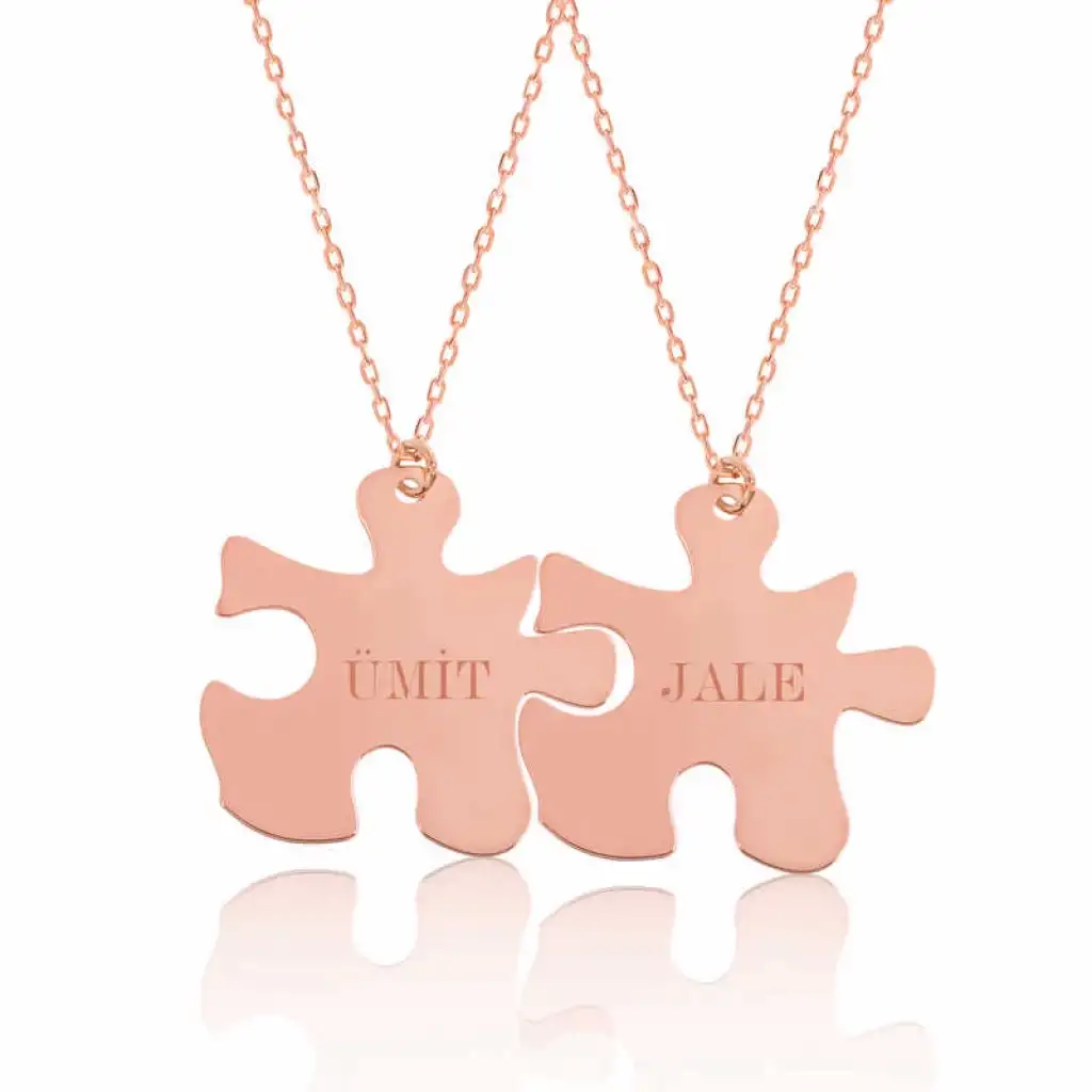 Birbirini tamamlayan aşıkların isimlerinin bir araya geldiği puzzle kolye ile isimleriniz sevdiğiniz kişinin teninde hayat bulsun. Genç aşıkların özel günlerde tercih edebileceği bu özel kolye ile sevdiğinizin boynunu aşkla süsleyin... Sizin olduğu kadar sevdiklerinizin de keyifle takacağı isimlik kolye en güzel hediyelerden biri olacaktır. Ürünlerimizin tamamı el emeği ile üretilmiştir. Gümüş ve değerli taşlar nedeniyle ürün ağırlığında ± %10 sapma olabilmektedir.