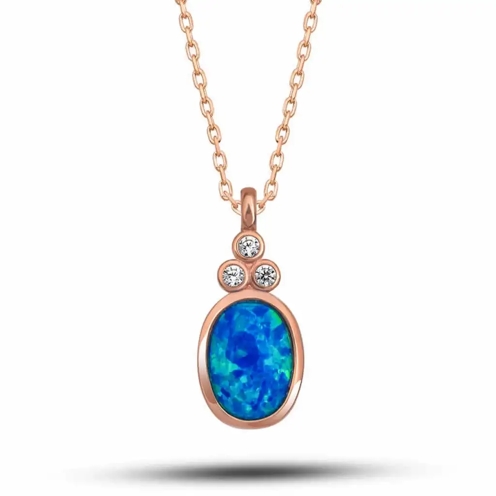 Gümüş Rose Mavi Opal Taşlı Ananas Kadın Kolye
