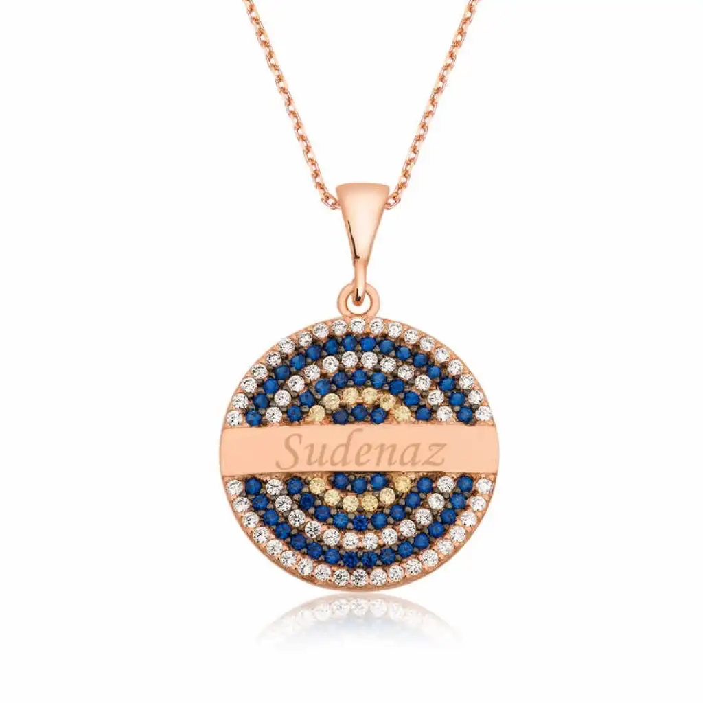 Işıl Işıl taşlarla süslenmiş bu şık kolye boynunuzda hayat bulsun... İsimde yazılabilen bu şık kolye ile; doğum günü hediyesi, sevgililer günü hediyesi veya annelere hediye olarak özel günlerde tercih edilebilecek mükemmel bir seçenektir. Kolye, 925 ayar gümüşten imal edilmiştir. Kolye üzerine rose kaplama yapılmıştır. Rose kaplama yapılan ürünler parlaklığını uzun süre muhafaza eder, gümüşü pembe renge dönüştürür ve oksitlenmeyi geciktirir. Üzerinde bulunan mavi taşlar zirkondur. Tüm gümüş bayan kolyelerde olduğu gibi gümüş mavi taşlı isimli bayan kolye de el emeği ile üretilmiştir. Gümüş ve değerli taşlar nedeniyle belirtilen ürün ağırlığında ± %10 sapma olabilmektedir.