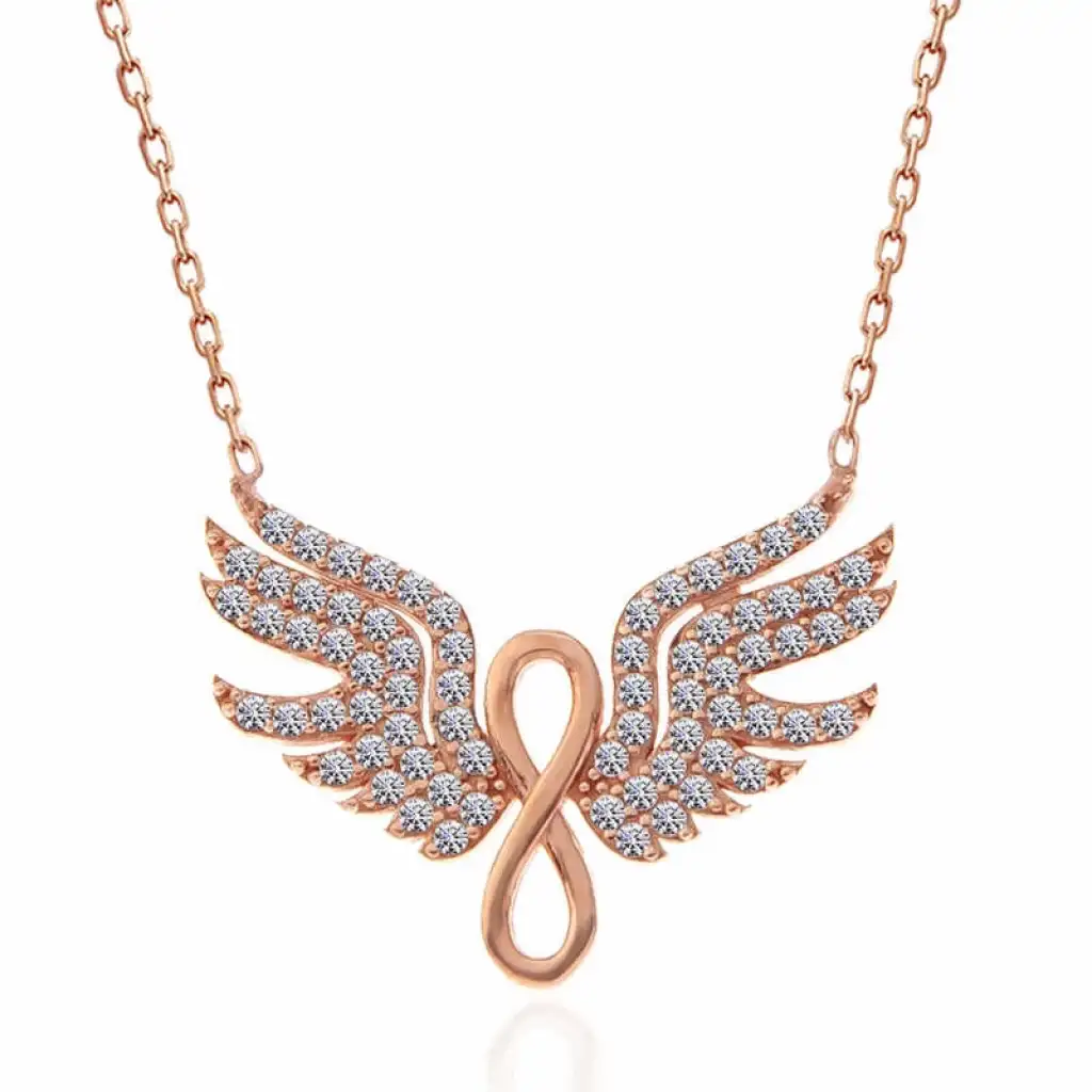 Gümüş Rose Melek Kanadı Sonsuzluk Kadın Kolye