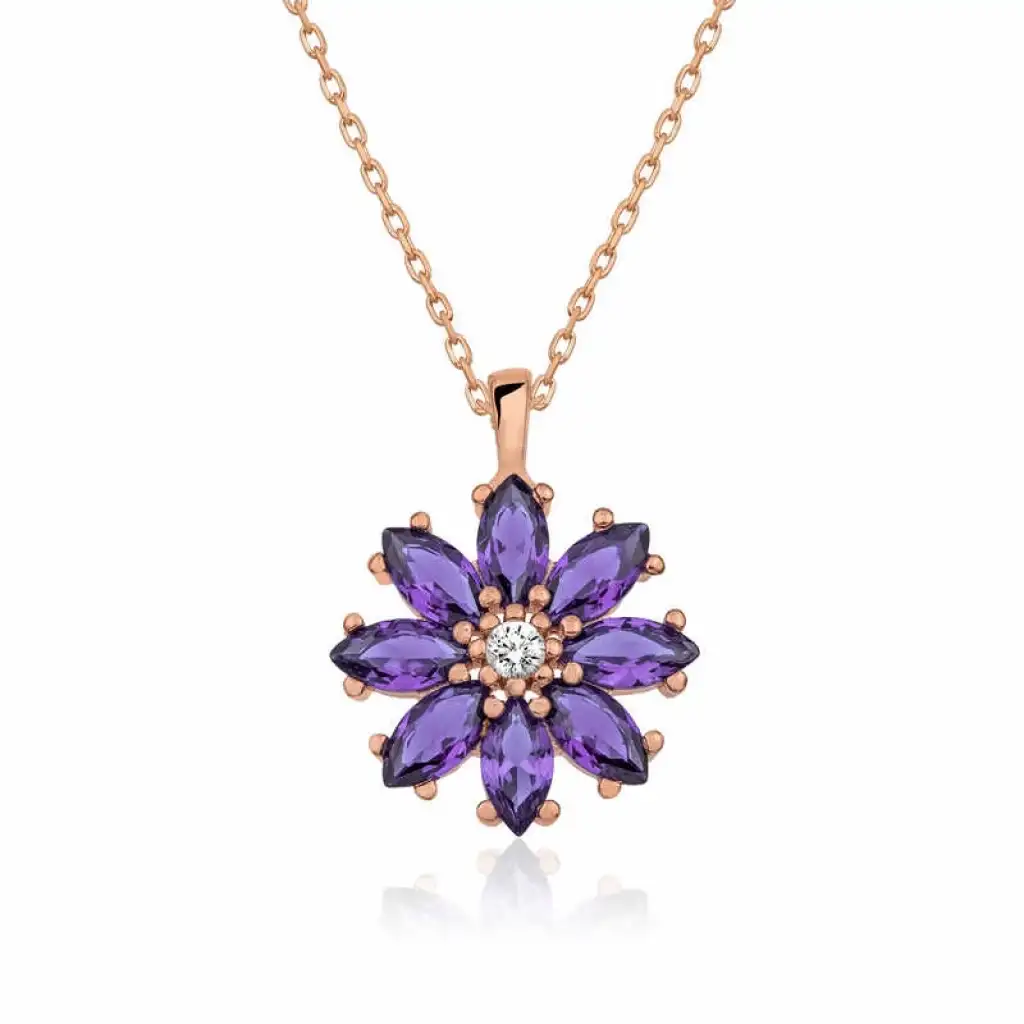 Gümüş Rose Mor Çiçek Kolye