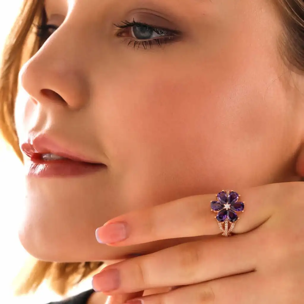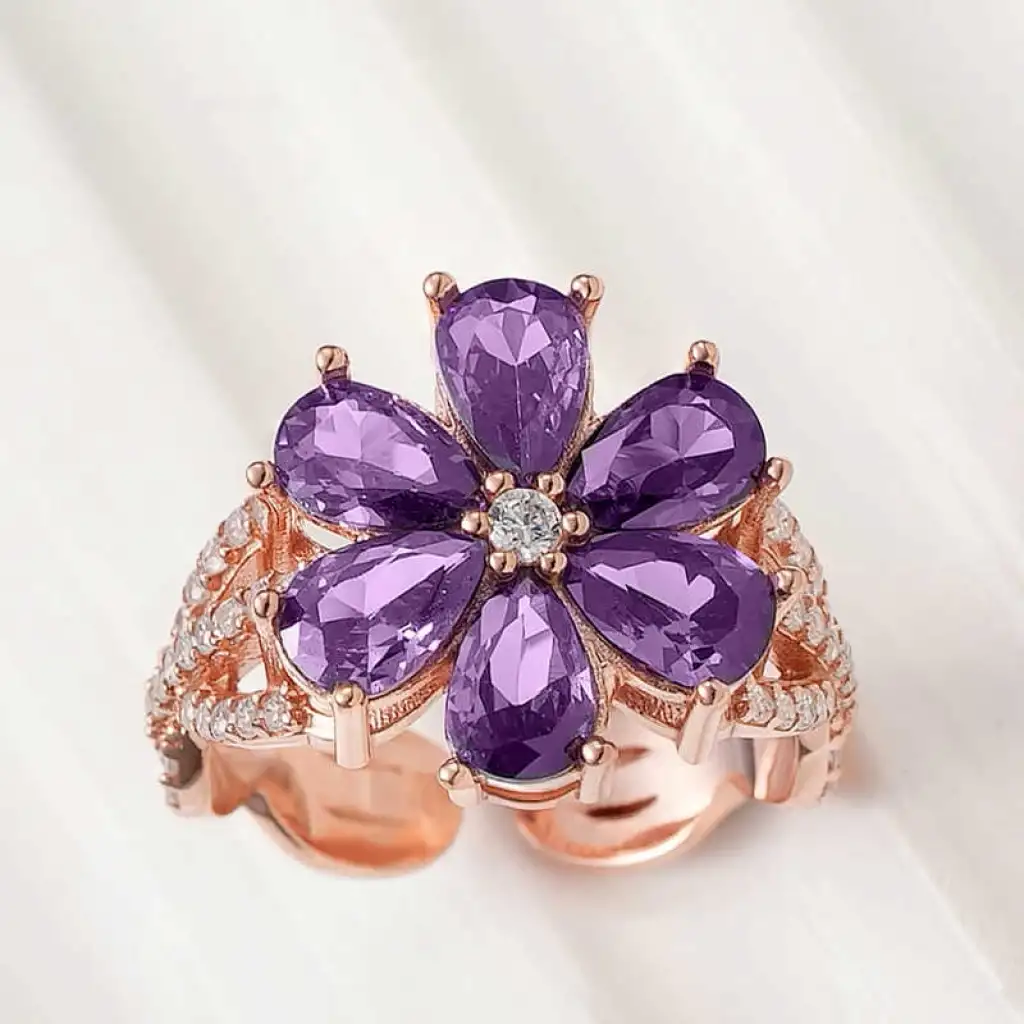 Gümüş Rose Ayarlanabilen Mor Sevgi Çiçeği Kadın Yüzük