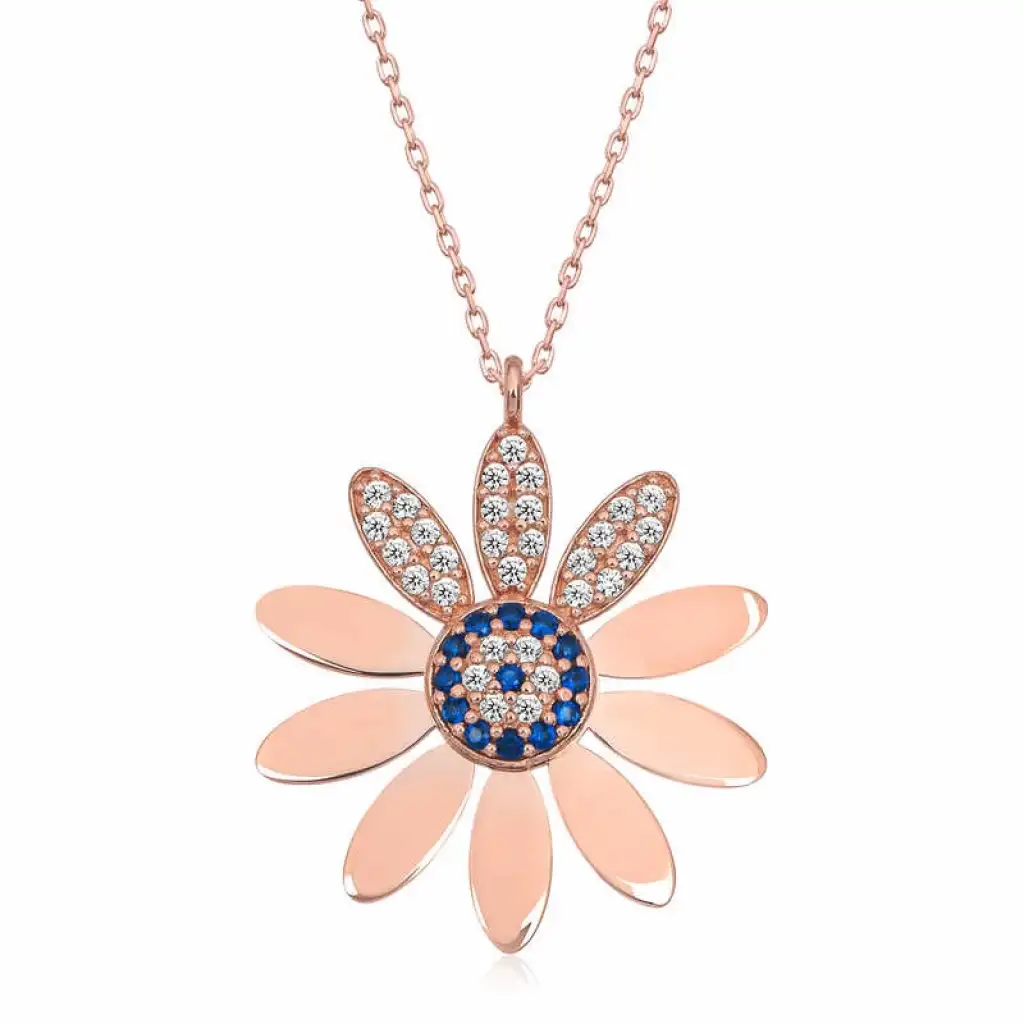 Gümüş Rose Nazarlı Papatya Kadın Kolye