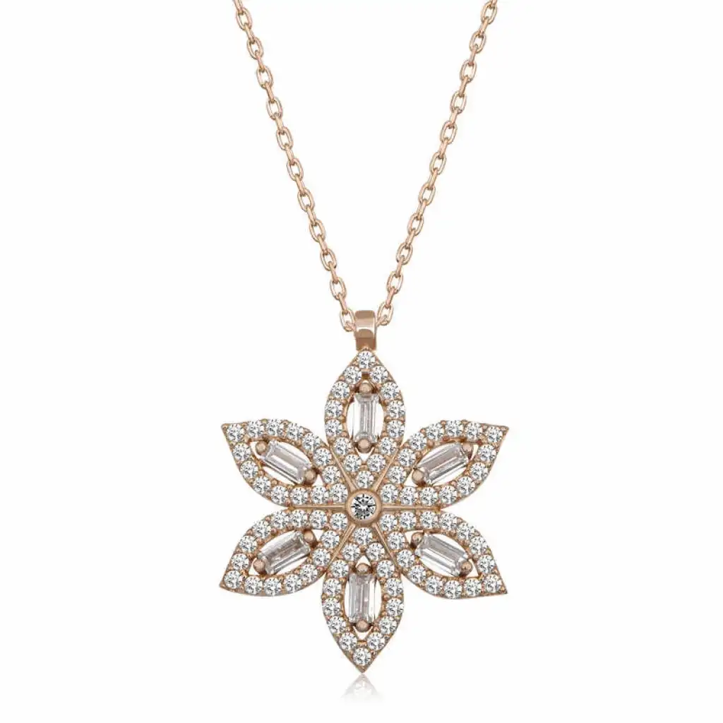 Sevdiklerinize duygularınızı ifade etmenin en özel ve zarif yolu O’na gönderebileceğiniz şık, rengarenk ve mis kokulu çiçeklerdir. Nergis, saygı duyma anlamı taşıdığından dolayı, hayatınızda değer verdiğiniz ve saygı duyduğunuz kişilere verilebilecek çiçeklerden birisidir. Nergisin farklı türleri vardır. Fakat hepsi genel anlamda Nergis olarak bilinir ve kullanılır. Güzellik ve aşk çiçeği olarak da bilinir. Özel günlerde verilecek hediyeler arasında olan çiçek, bu kez gümüş kolye ile anlam buldu. En kaliteli, en parlak, en ışıltılı taşlarla hazırlanmış gümüş çiçek kadın kolye sevgisini bir kez daha anlatmak isteyenleri, sen bir çiçeksin demek isteyenleri bekliyor. Bu özel tasarım gümüş nergiz çiçeği kadın kolye 925 ayar gümüşten imal edilmiştir. Gümüş üzerine rose kaplama yapılmıştır. Rose kaplama yapılan gümüş kadın kolye modelleri parlaklığını uzun süre muhafaza eder ve oksitlenmesi gecikir. Kolye üzerinde bulunan beyaz taşlar baget ve zirkondur. Gümüş olan zincir boyu ortalama 45 cm'dir. Tüm kadın gümüş kolye modellerinde olduğu gibi gümüş nergiz çiçeği kadın kolye de el emeği ile üretilmiştir. Gümüş ve değerli taşlar nedeniyle belirtilen ürün ağırlığında ± %10 sapma olabilmektedir.