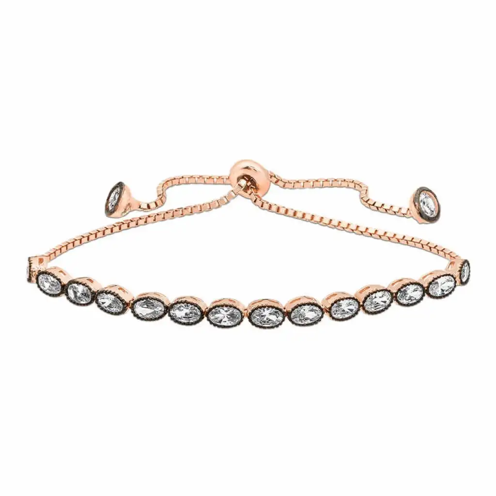 Gümüş Rose Oval Kesim Elmas Montür Asansör Bileklik