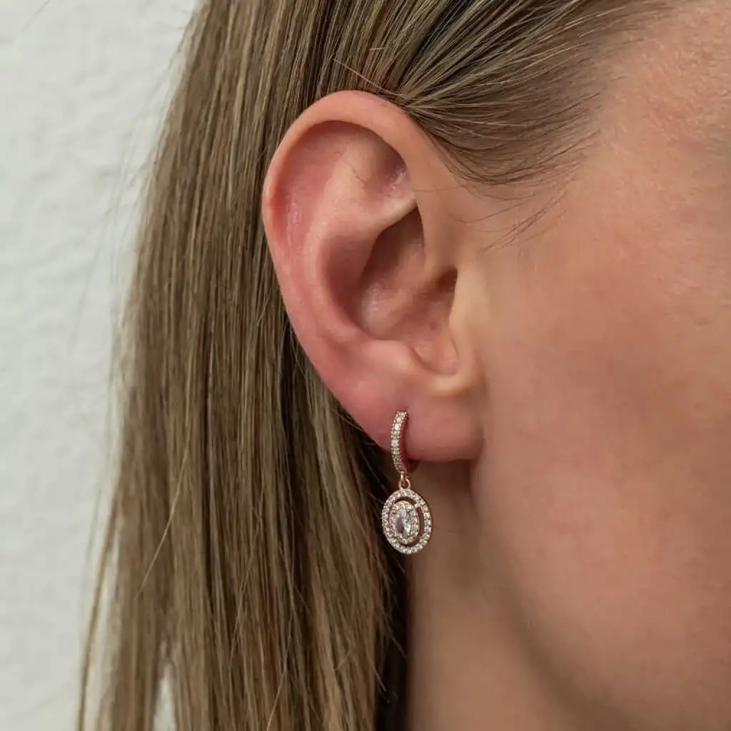 Gümüş Rose Oval Taşlı Sallantılı Küpe