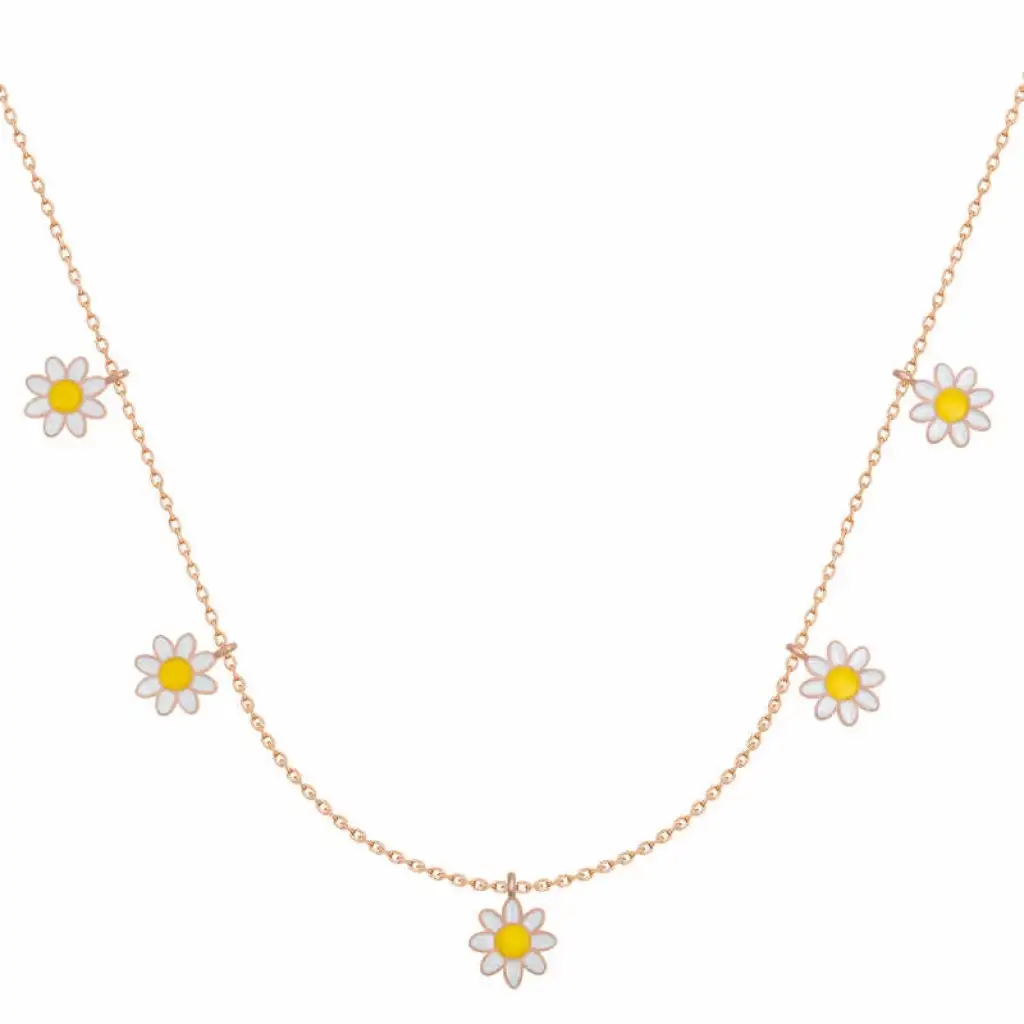 Papatya çiçeği temiz sevgi anlamını ifade eder. En büyük özelliklerinden biri her sapında bir tane olmasıdır. Bu güzellik tasarlanarak ortaya çıkan bu ışıl ışıl kolye, doğum günü hediyesi, sevgililer günü hediyesi veya annelere hediye olarak özel günlerde tercih edilebilecek mükemmel bir seçenektir. Gümüş papatya şans Kadın kolye 925 ayar gümüşten imal edilmiştir. Bu kolye üzerinde rose kaplama vardır. Rose kaplama yapılan ürünler parlaklığını uzun süre muhafaza eder. Tüm gümüş kadın kolye modellerinde olduğu gibi gümüş papatya şans kadın kolye modeli de el emeği ile üretilmiştir. Gümüş ve değerli taşlar nedeniyle belirtilen ortalama ürün ağırlığında ± %10 sapma olabilmektedir.