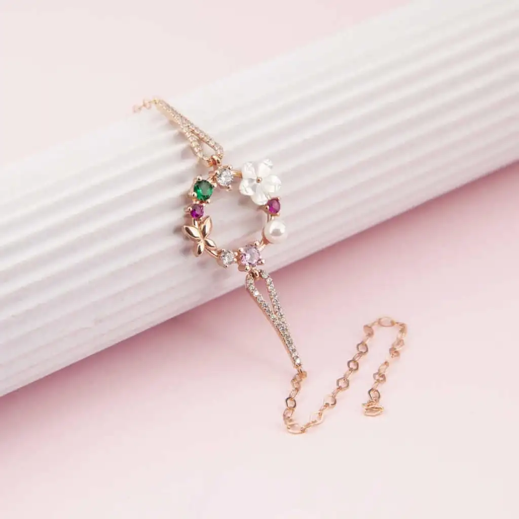 Gümüş Rose Manolya Çiçeği Kelebek Kadın Bileklik
