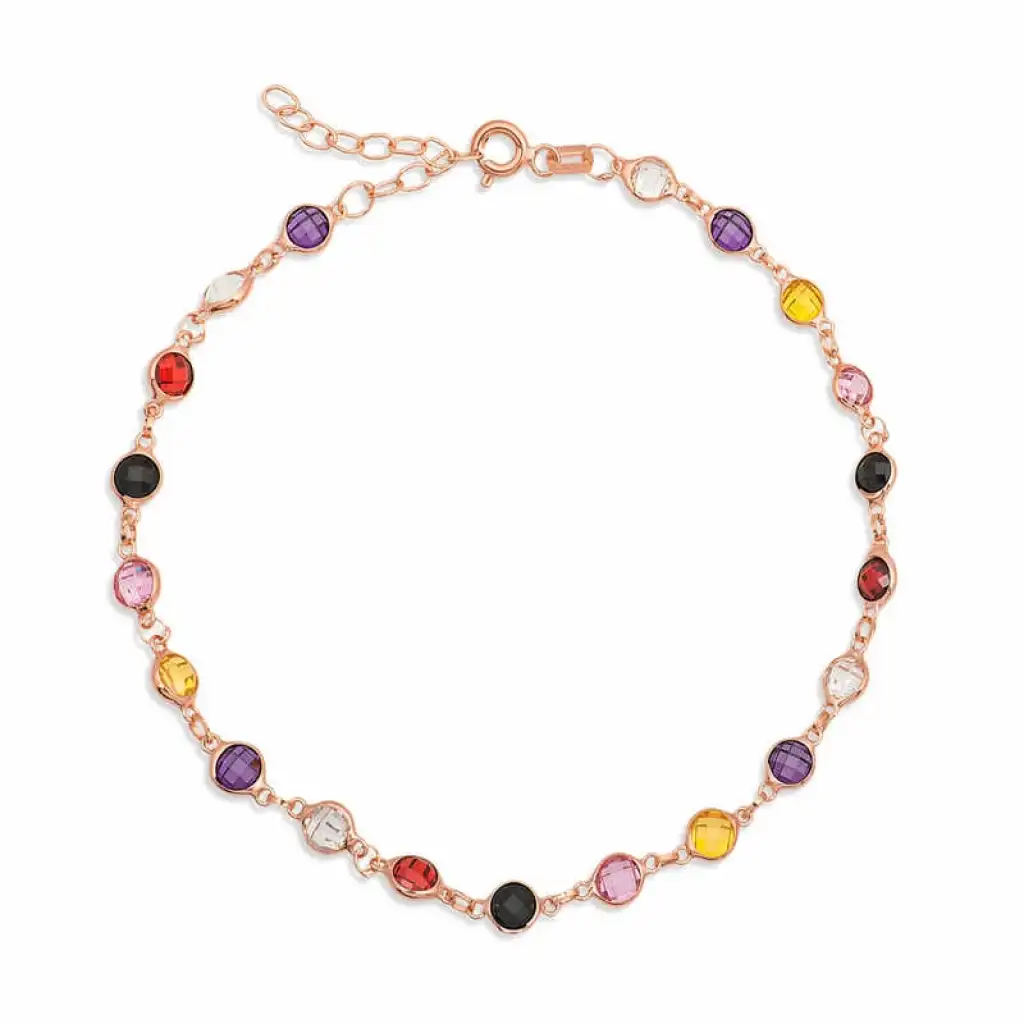 Gümüş Rose Renkli Taşlı Kadın Halhal