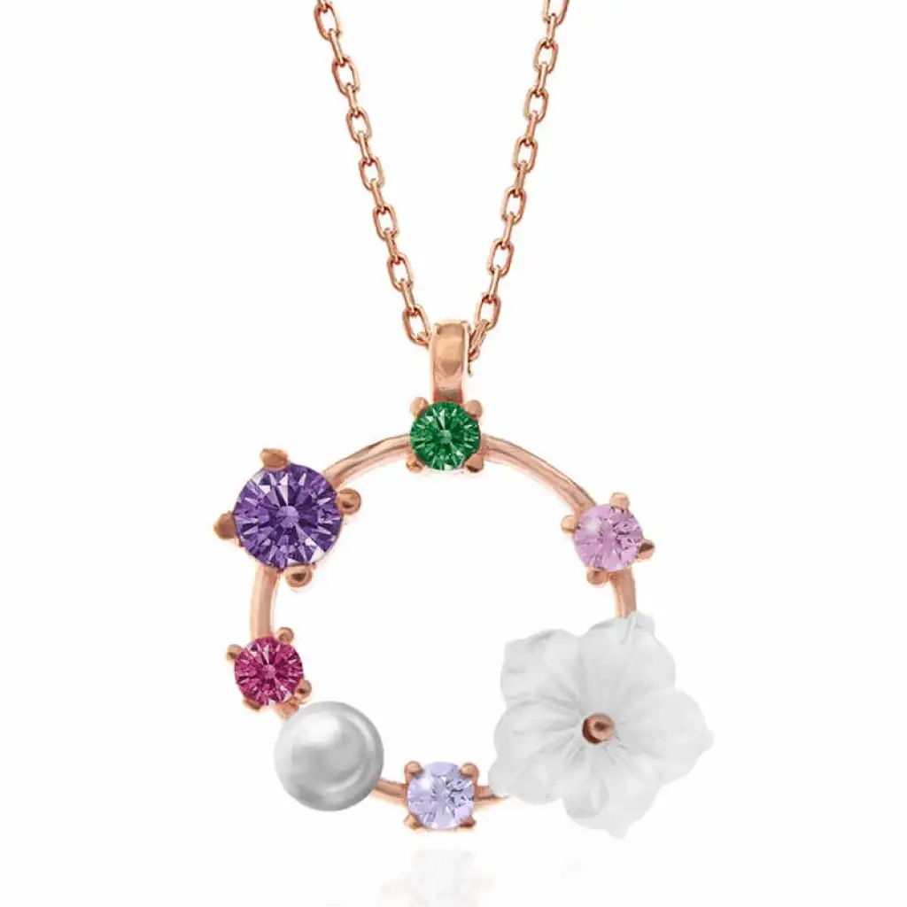 Gümüş Rose Renkli Taşlı Manolya Çiçeği Kadın Kolye