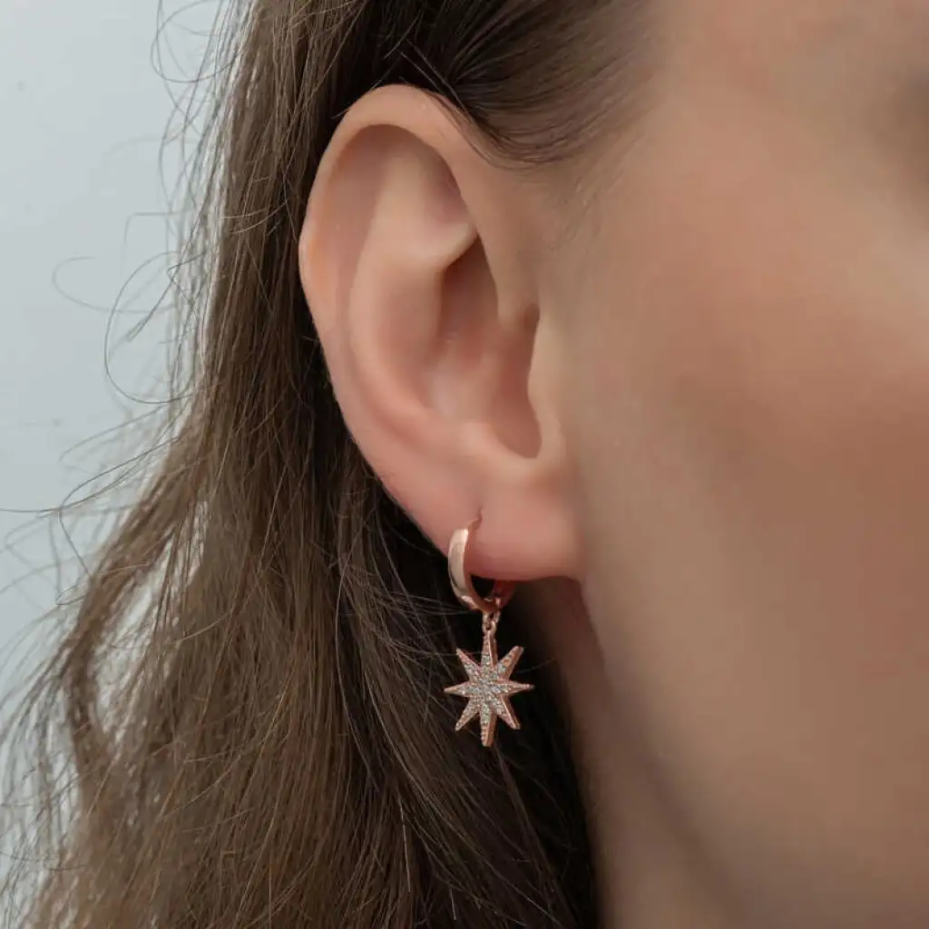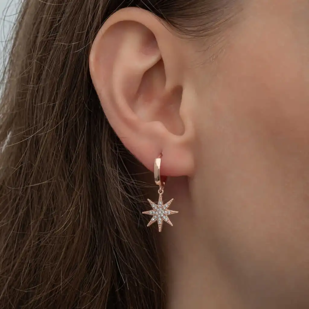 Gümüş Rose Sallantılı Kutup Yıldızı Kadın Küpe