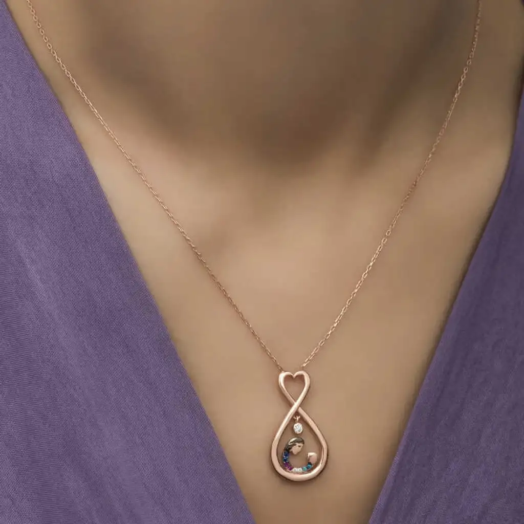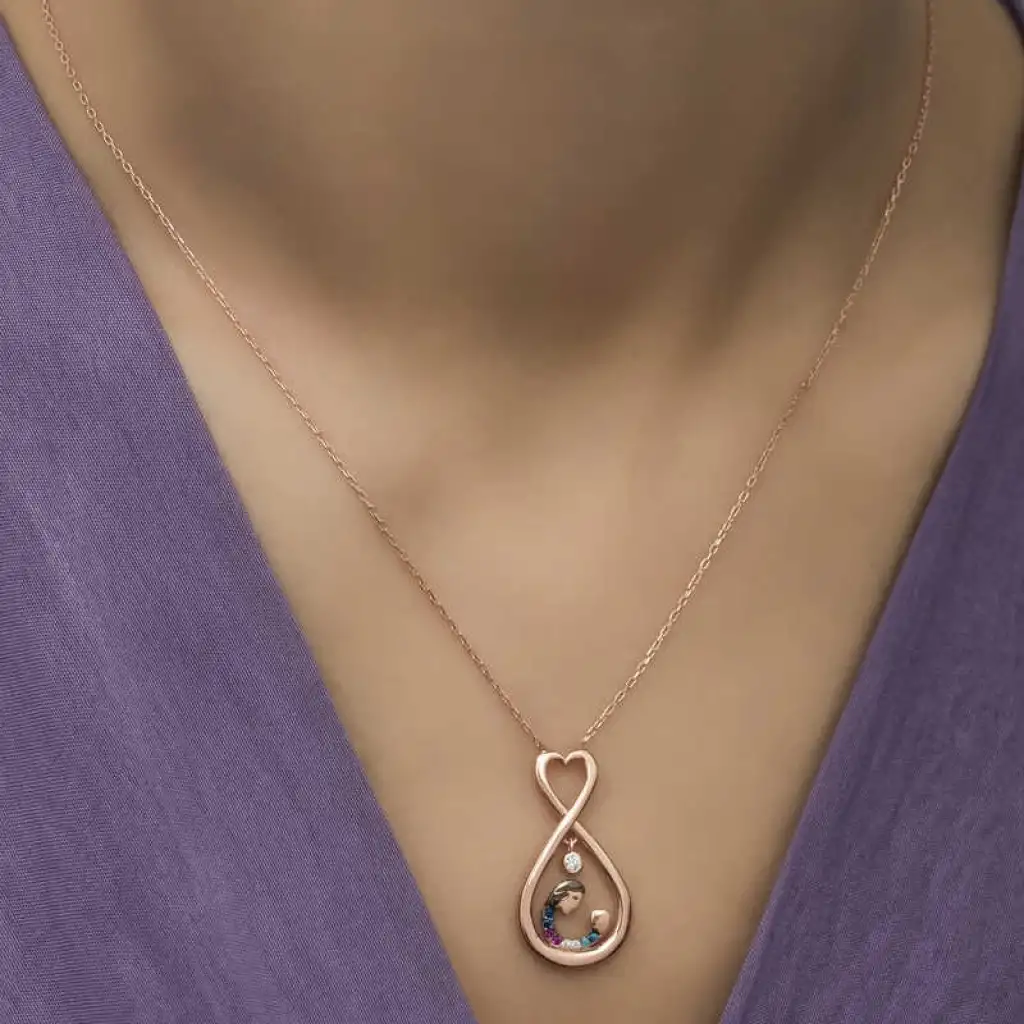 Gümüş Rose Sonsuz Kalpli Anne Çocuk Kolyesi