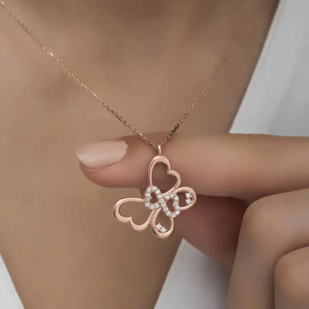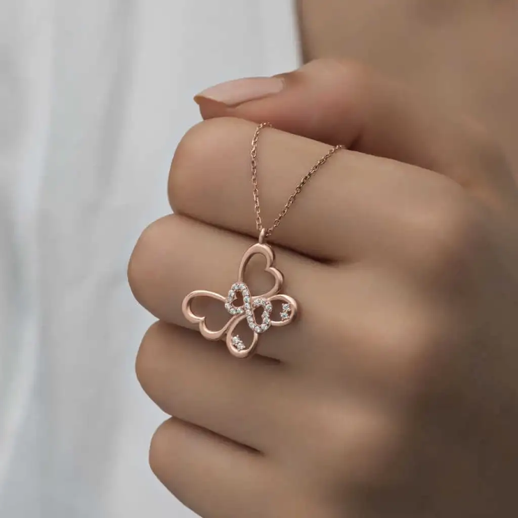Gümüş Rose Sonsuzluk Kelebek Kadın Kolye