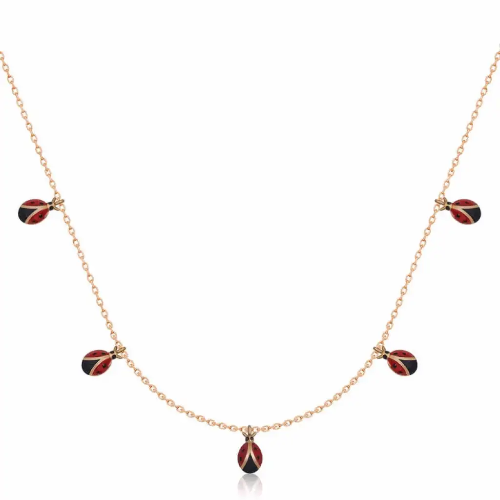 Gümüş Rose Uğur Böceği Şans Kadın Kolye