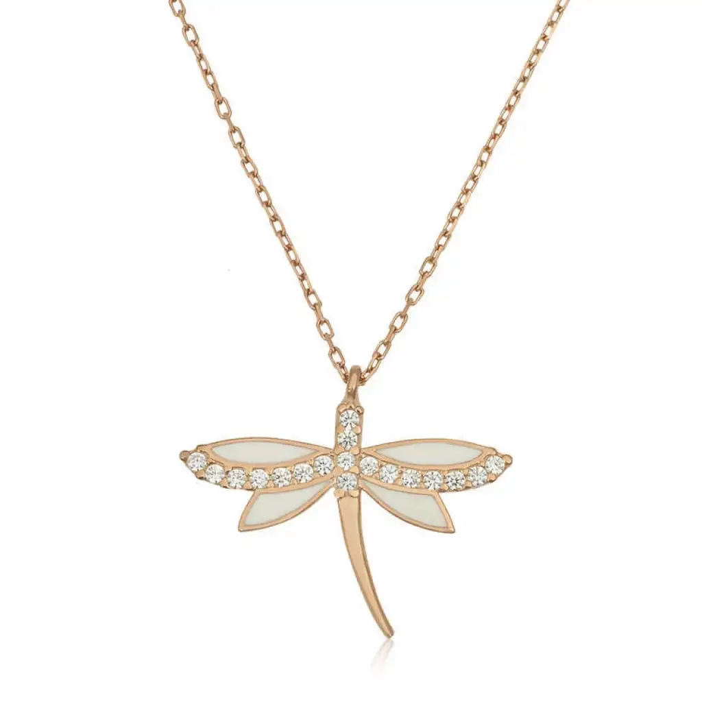 Yusufçuk, bağlılığın, sadakatin, tek eşliliğin sembolüdür... Ölüme rağmen aşkından vazgeçmez yusufçuk... Doğa gereği, erkek yusufçuk ile dişi yusufçuğun çiftleşmesinin ardından erkek yusufçuk ölmektedir. Sonunda ölüm olduğunu bile bile erkek yusufçuk, hayatı boyunca tek bir dişi ile çiftleşiyor ve bundan asla vazgeçmiyor... Kolye, böyle hüzün ve sadakat kokan bu güzellikten ilham alarak tasarlanmıştır... Bu zarif kolye; doğum günü hediyesi, sevgililer günü hediyesi veya özel günlerde tercih edilebilecek müthiş bir kolyedir. Bu şık tasarım 925 ayar gümüşten imal edilmiştir. Gümüş üzerine rose kaplama yapılmıştır. Rose kaplama yapılan kolyeler parlaklığını uzun süre muhafaza eder, gümüş rengini pembe renge dönüştürür. Kolye üzerinde bulunan taşlar zirkondur. Tüm bayan gümüş kolyelerde olduğu gibi gümüş yusufçuk bayan kolye de el emeği ile üretilmiştir. Gümüş ve değerli taşlar nedeniyle belirtilen ürün ağırlığında ± %10 sapma olabilmektedir.