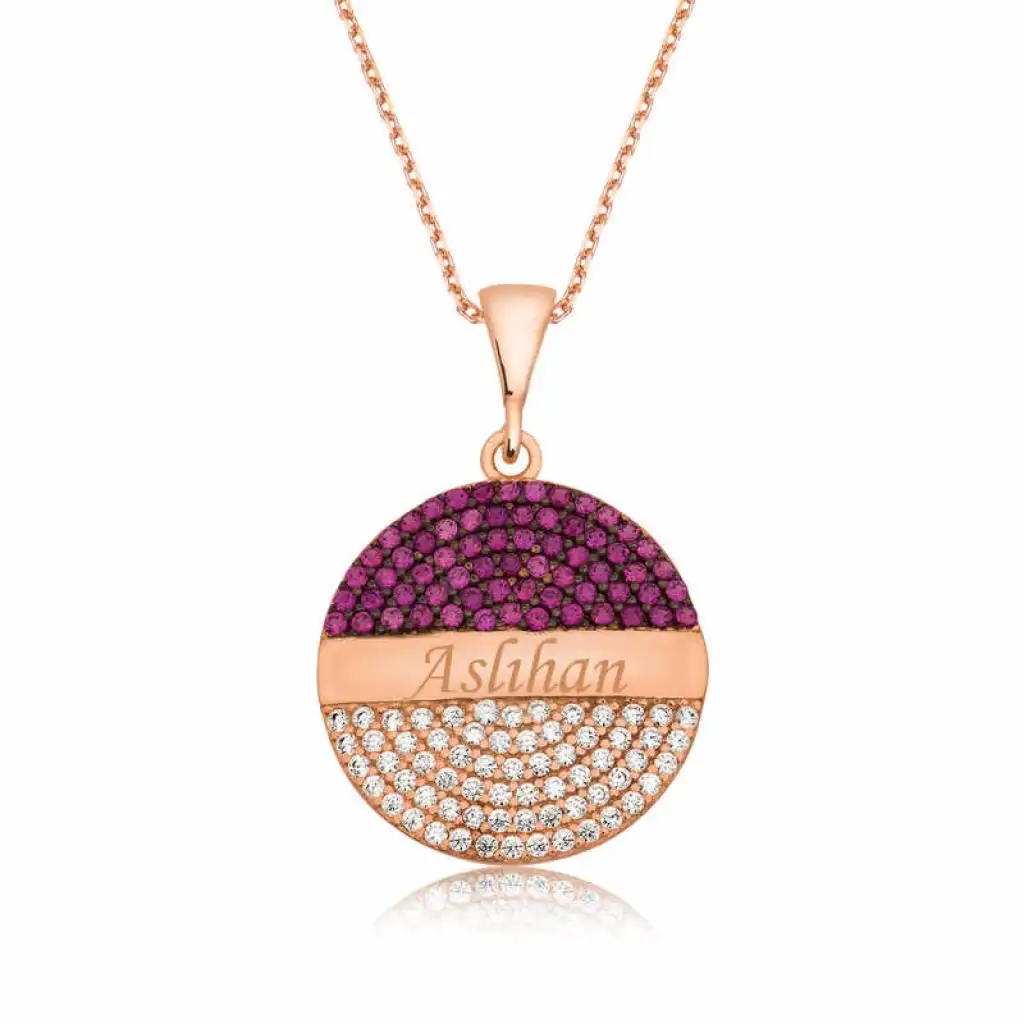 Kişiye özel olarak tasarlanmış bu şık kolye modeline sizin ve sevdiklerinizin isimlerini kazımaya ne dersiniz? İsim yazdırmadan da takılabilecek bu tasarım; doğum günü hediyesi, sevgililer günü hediyesi veya annelere hediye olarak özel günlerde tercih edilebilecek mükemmel bir seçenektir. Zirkon taşlı isimli bayan kolye 925 ayar gümüşten imal edilmiştir. Gümüş üzerine rose kaplama yapılmıştır. Rose kaplama yapılan gümüş bayan kolye modeleri parlaklığını uzun süre muhafaza eder, gümüşü pembe renge çevirir, oksitlenmesi gecikir. Tüm gümüş bayan kolye modellerinde olduğu gibi bu gümüş yuvarlak isimli bayan kolye modeli de tamamen el emeği ile üretilmiştir. Üzerinde bulunan taşlar zirkondur. Gümüş ve değerli taşlar nedeniyle belirtilen ortalama ürün ağırlığında ± %10 sapma olabilmektedir.