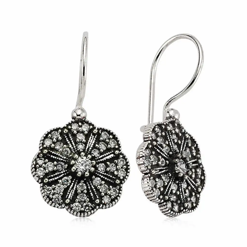 Gümüş Sallantılı Çiçek Küpe