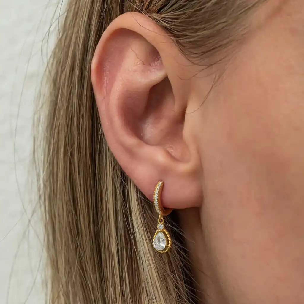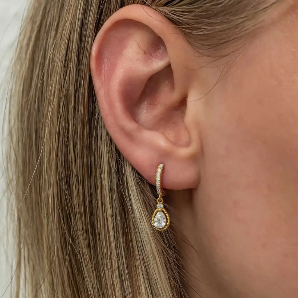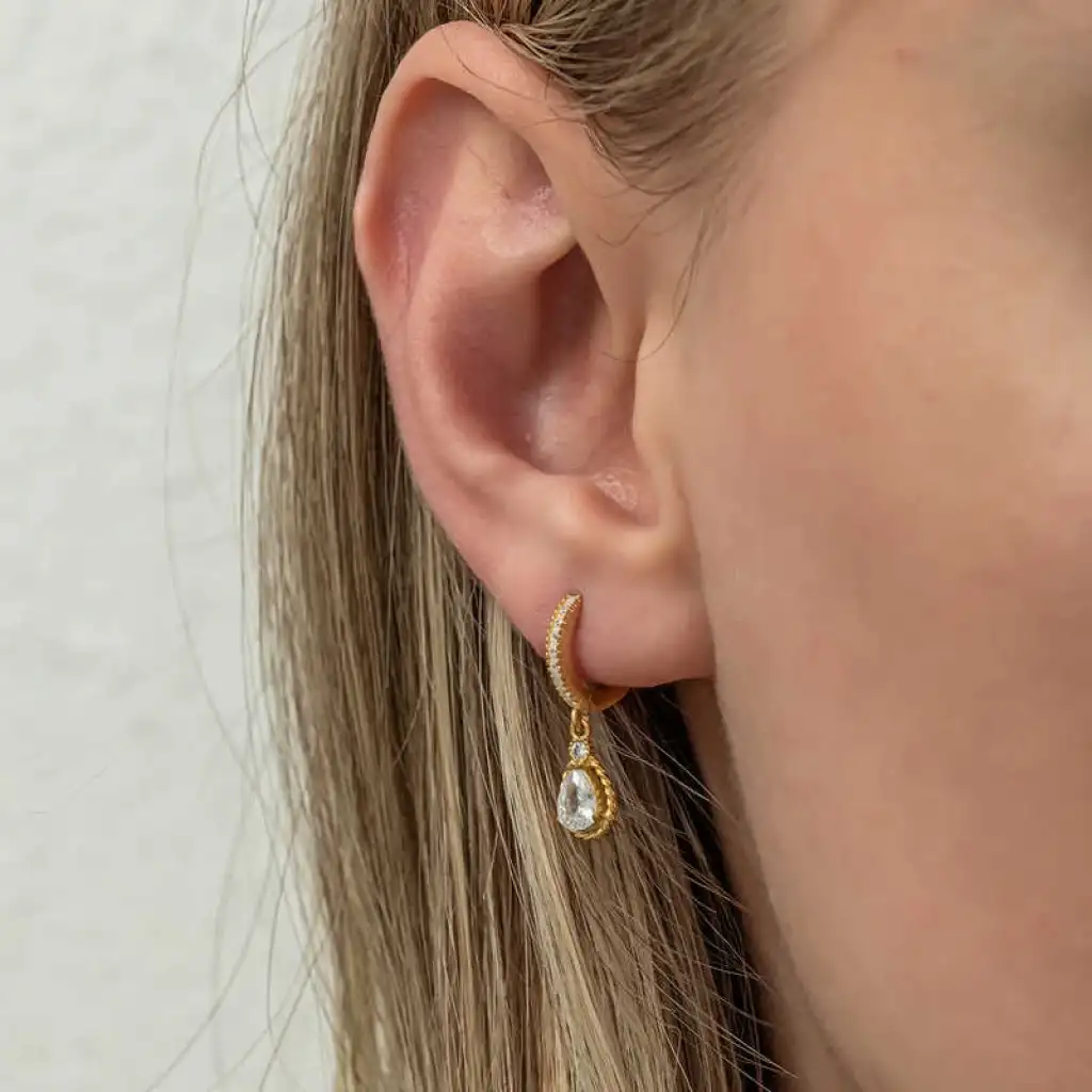 Özel günlerde verilecek hediyeler arasında olan çiçek, bu kez gümüş küpe ile anlam buldu. En kaliteli, en parlak, en ışıltılı taşlarla hazırlanmış gümüş bayan küpe, sevgisini bir kez daha anlatmak isteyenleri, Zihnin duruluğunu ve saflığını ifade eden küpe modeli; 925 ayar gümüşten imal edilmiştir. Gümüş üzerine gold kaplama yapılmıştır.Gold kaplama yapılan gümüş küpeler parlaklığını uzun süre muhafaza eder, oksitlenmesi gecikir. Tüm bayan gümüş küpelerde olduğu gibi gümüş damla küpe modeli de el emeği ile üretilmiştir. Üzerinde bulunan taşlar zirkondur. Gümüş ve değerli taşlar nedeniyle belirtilen ortalama ürün ağırlığında ± %10 sapma olabilmektedir.