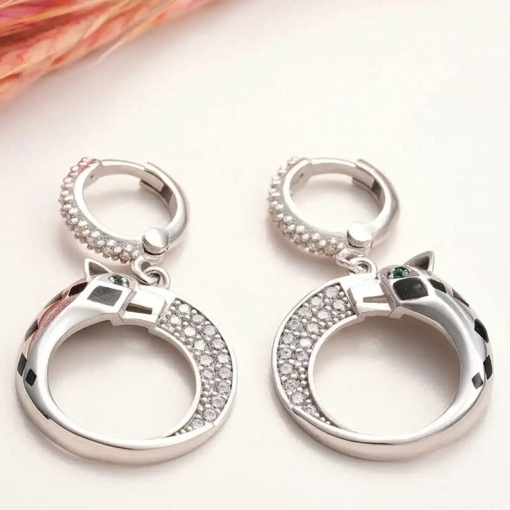 Gümüş Sallantılı Kaplan Figürlü Kadın Küpe