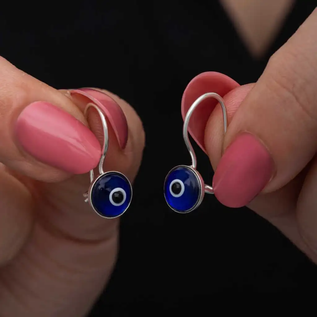 Nazar boncuğunu insanlar uzun yıllardan beri kötü bakıştan korunmak için kullanmışlardır. Kötü bakışların insanlar üzerinde olumsuz etki oluşturmasına karşı bir önlemdir nazar boncuğu… Bu sebeptendir ki insanlar sevdiklerini korumak için nazar boncuğu takmaktadır. Bu nazar küpe de şıklığı ve zarafeti yansıtıyor. Her dönem sevilen ve şıklığından ödün vermeyen bu modeli; doğum günü hediyesi, sevgililer günü hediyesi veya annelere hediye olarak özel günlerde tercih edebilirsiniz. Sallantılı nazar küpe modeli 925 ayar gümüşten imal edilmiştir. Gümüş üzerine rodyum kaplama yapılmıştır. Rodyum kaplama yapılan gümüş kadın küpeler parlaklığını uzun süre muhafaza eder, oksitlenmesi gecikir. Üzerinde bulunan taşlar zirkondur. Tüm gümüş kadın küpelerde olduğu gibi bu gümüş sallantılı nazar kadın küpe de tamamı el emeği ile üretilmiştir. Gümüş ve değerli taşlar nedeniyle belirtilen ortalama ürün ağırlığında ± %10 sapma olabilmektedir.