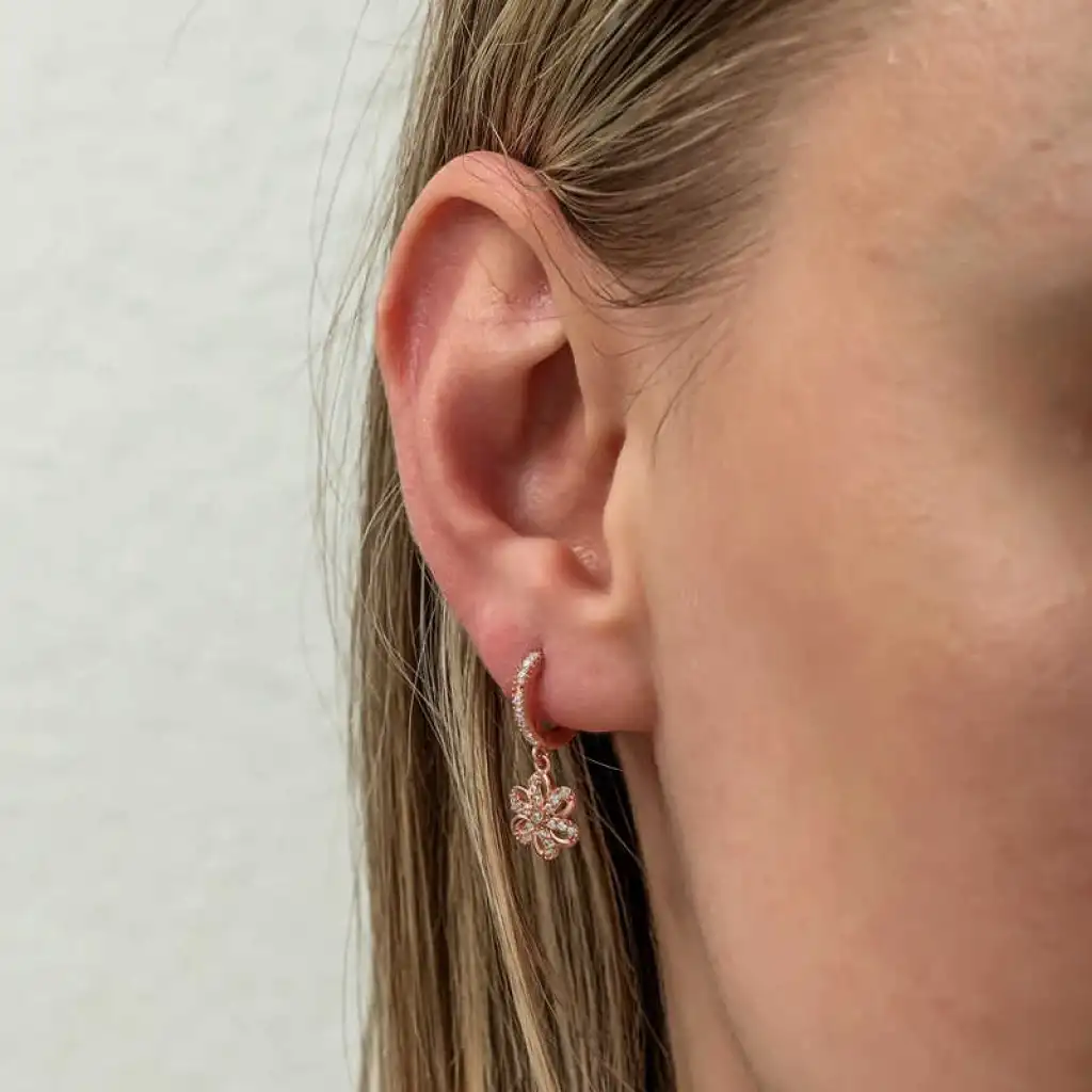 Gümüş Sallantılı Rose Çiçek Kadın Küpe