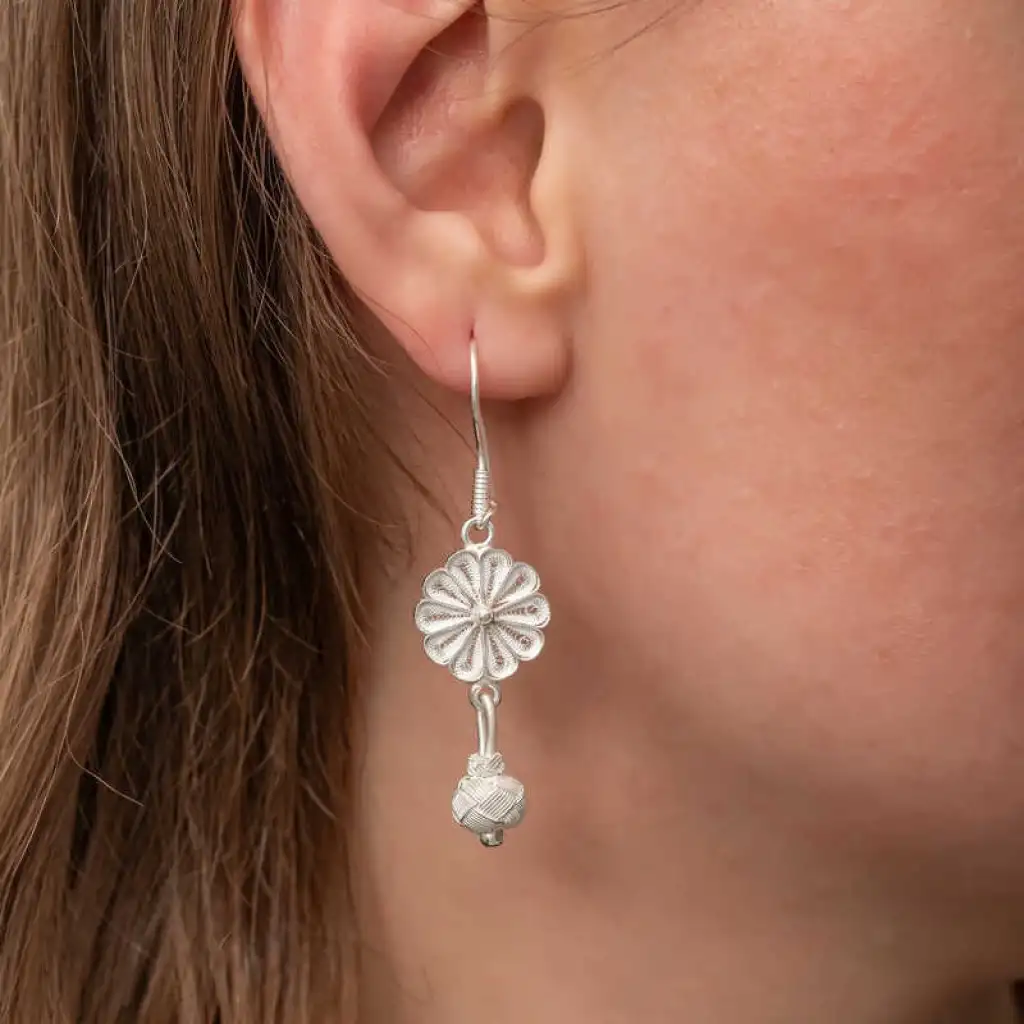 Gümüş Sallantılı Trabzon Örmesi Kazaz Kadın Küpe