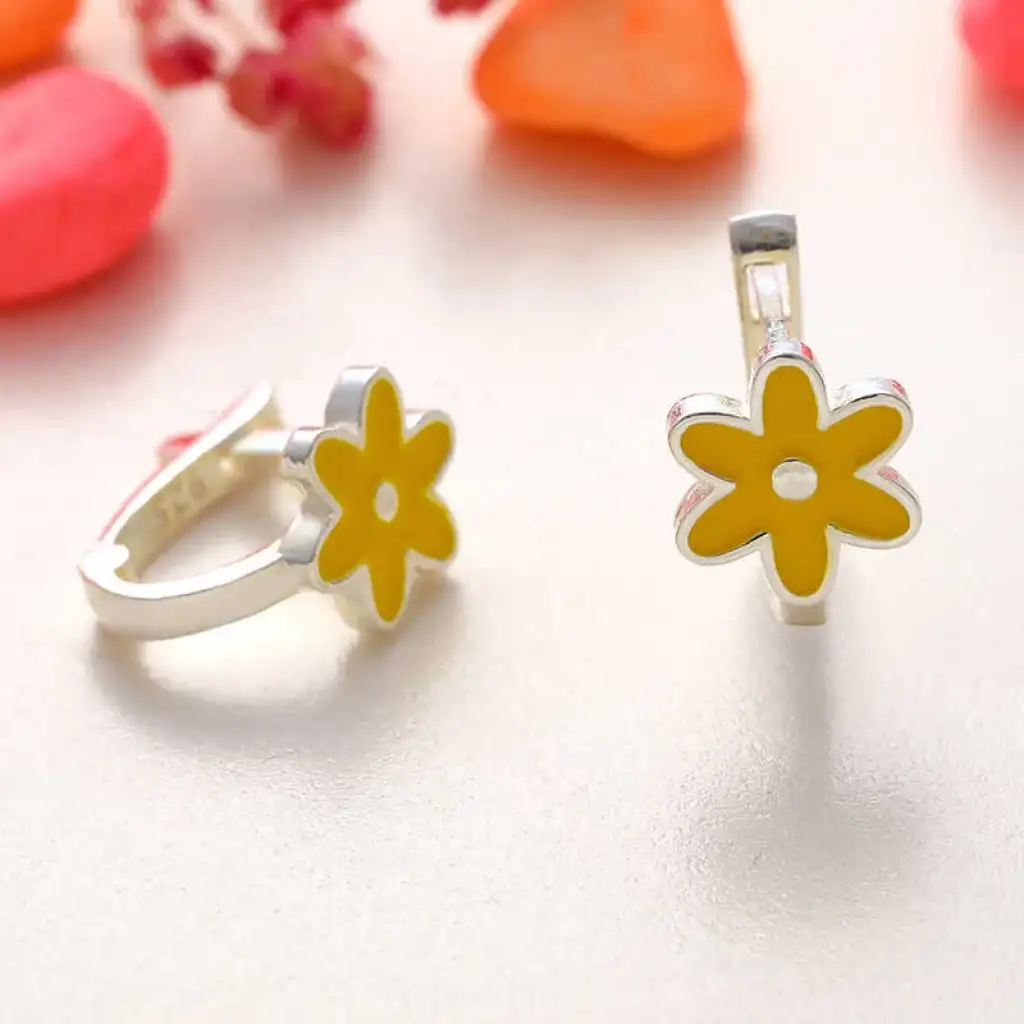 Gümüş Sarı Çiçek Çocuk Küpesi