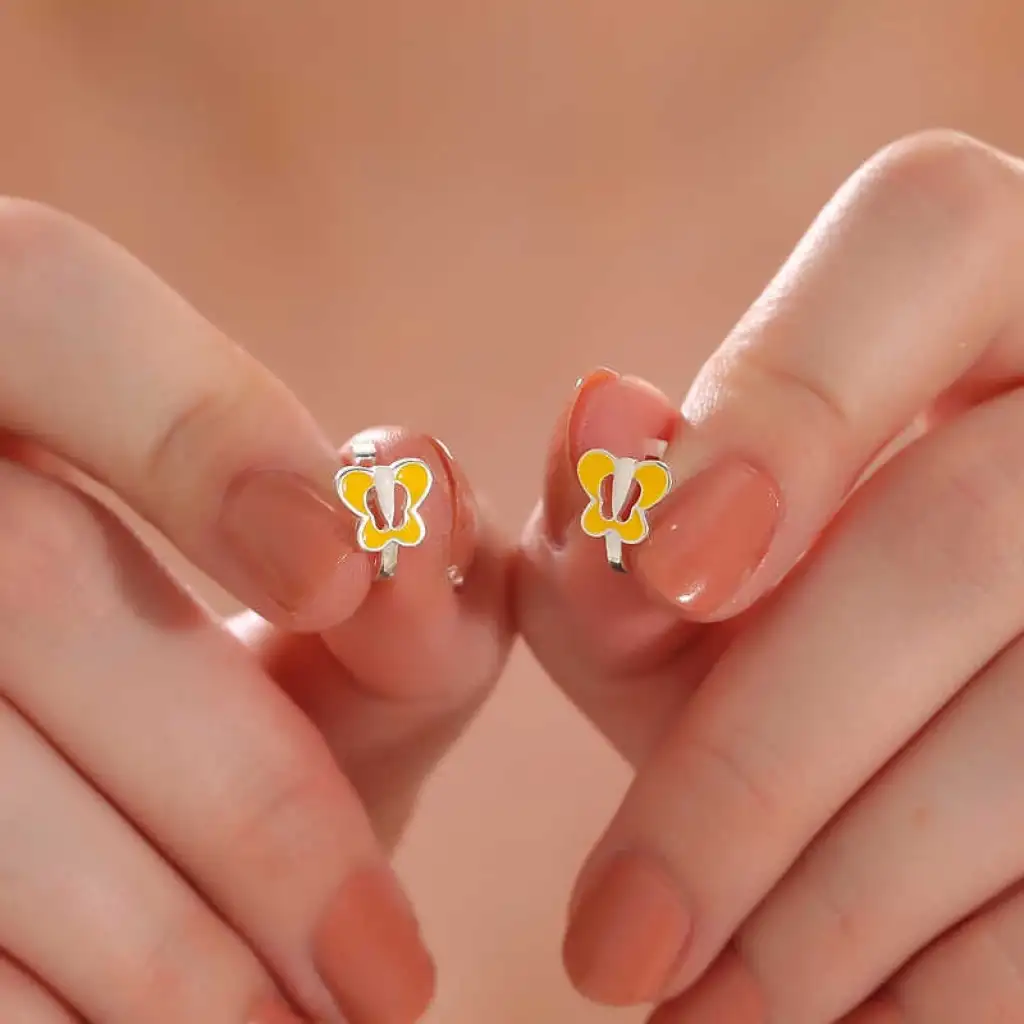 Gümüş Sarı Kelebek Çocuk Küpesi
