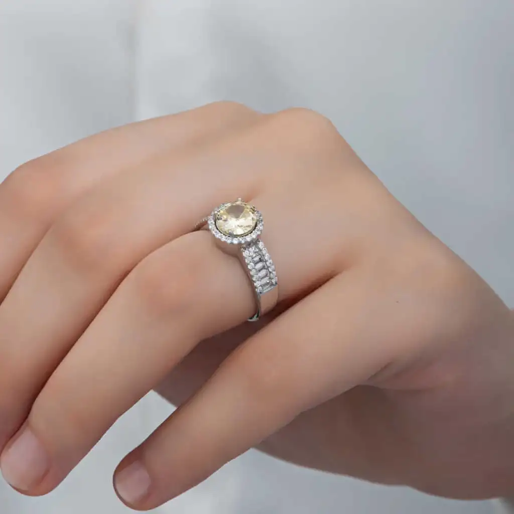 Gümüş Sarı Tek Taş Kadın Yüzük