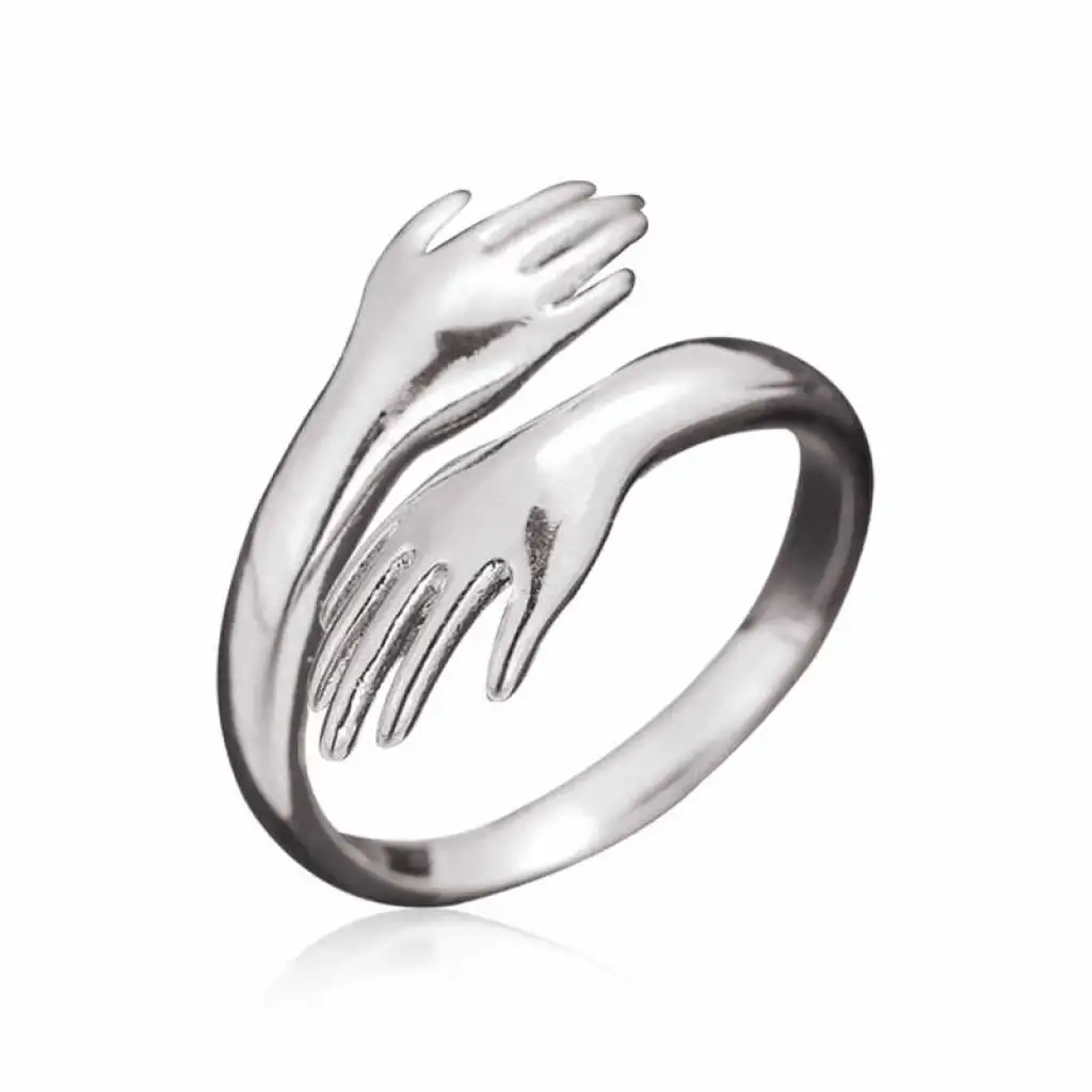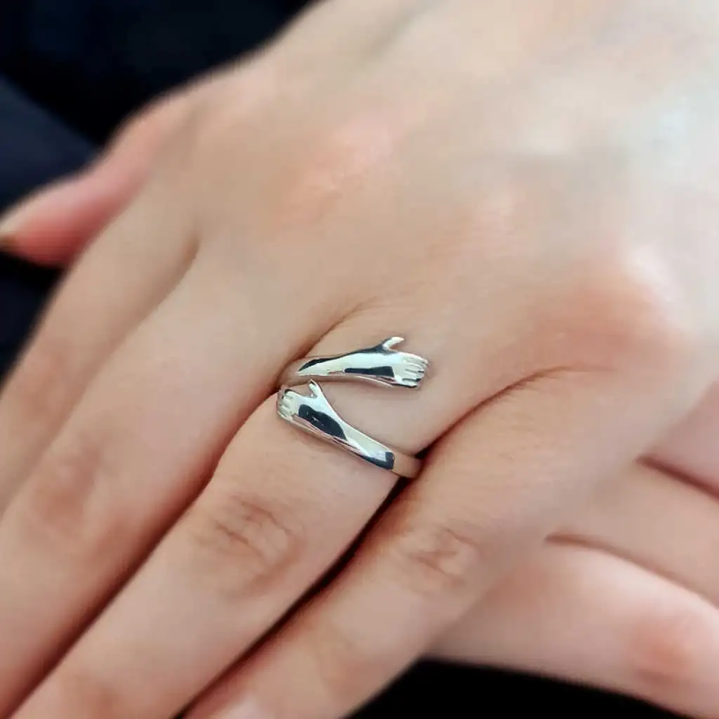 Sevdiklerinize alışılmışın dışında hediyeler almak ve onları şaşırtarak mutlu etmek istiyorsanız sarılan eller yüzük tam size göre. Uzakta olan sevdiklerinize duyduğunuz sevginizi, her an ona sarılabilen bir yüzükle paylaşabilirsiniz. Yaratıcı ve özgün tasarıma sahip ayarlanabilir sarılan eller yüzük, 925 ayar gümüşten üretilmiştir. Gümüş üzerine rodyum kaplama yapılmıştır. Rodyum kaplama yapılan bayan gümüş yüzük modelleri parlaklığını uzun süre muhafaza eder, oksitlenmesi gecikir. Sevdiğinize doğum günü, sevgililer günü ve özel günlerde verebileceğiniz mükemmel bir hediye seçeneğidir. Gümüş bayan yüzük modellerimizin tamamında olduğu gibi bu ayarlanabilir sarılan bayan yüzük de tamamen el emeği ile üretilmiştir. Gümüş ve değerli taşlar nedeniyle belirtilen ortalama ürün ağırlığında ± %10 sapma olabilmektedir.