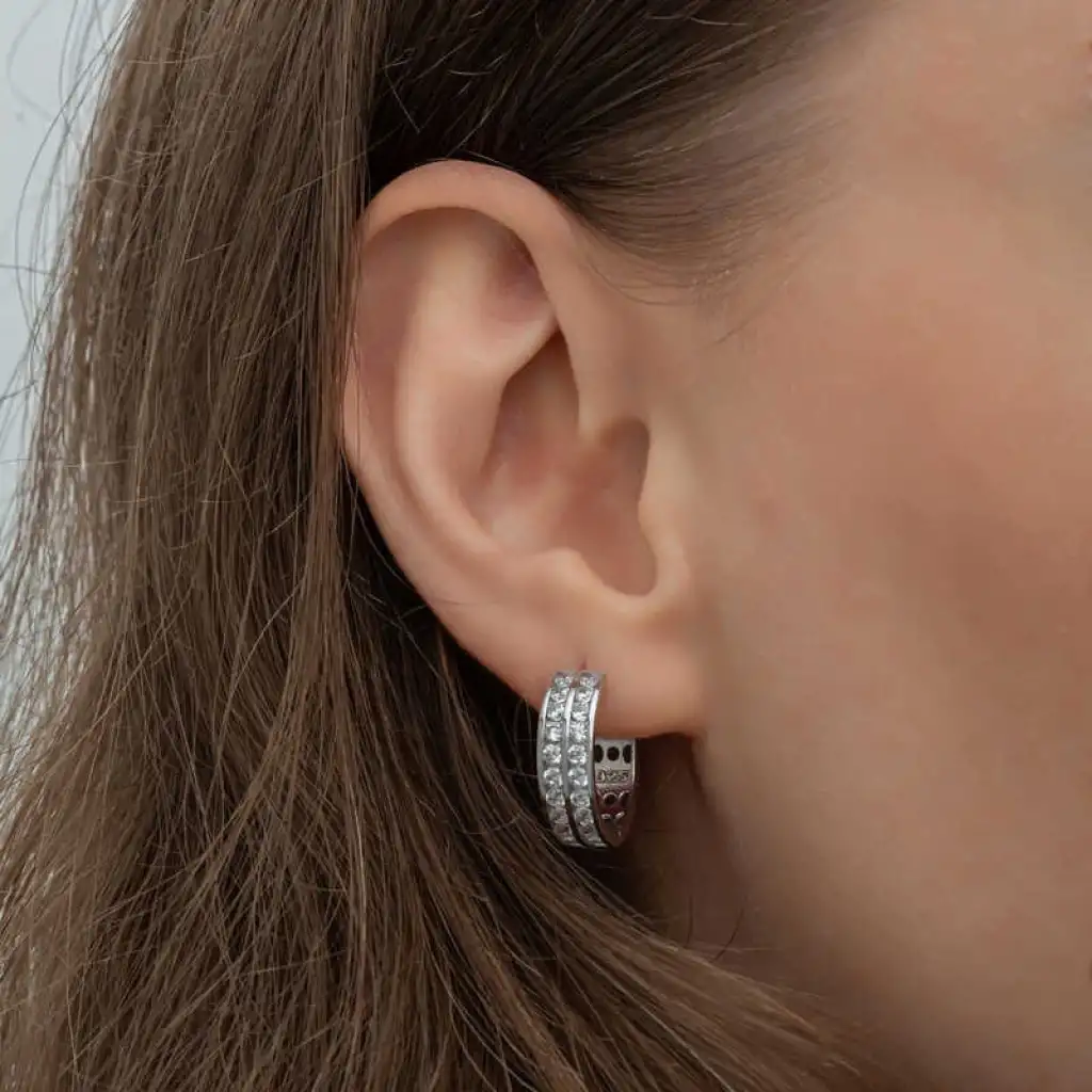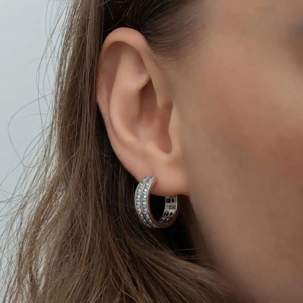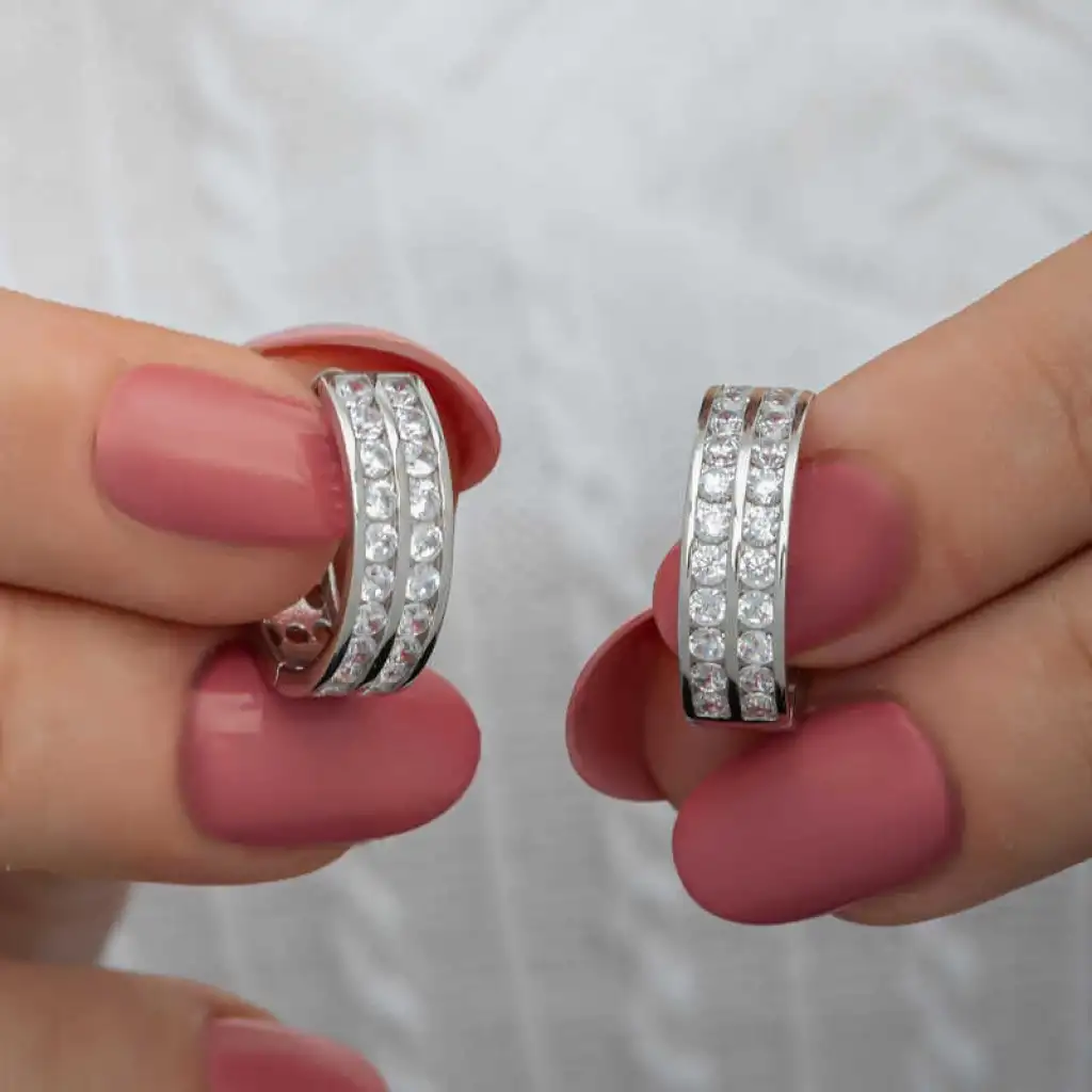 Gümüş Sıra Taşlı Halka Kadın Küpe