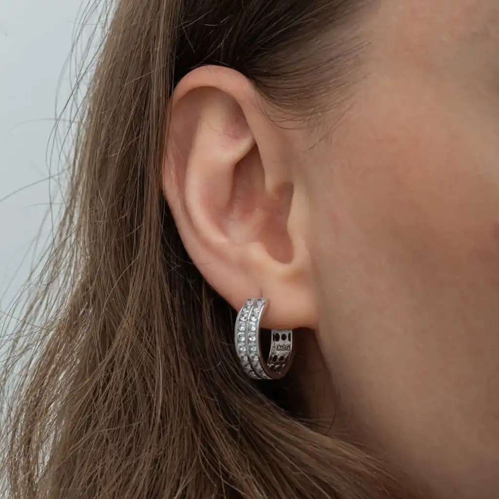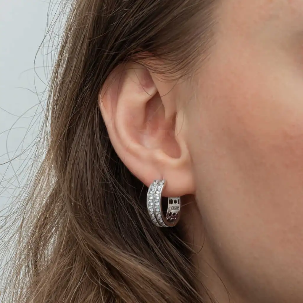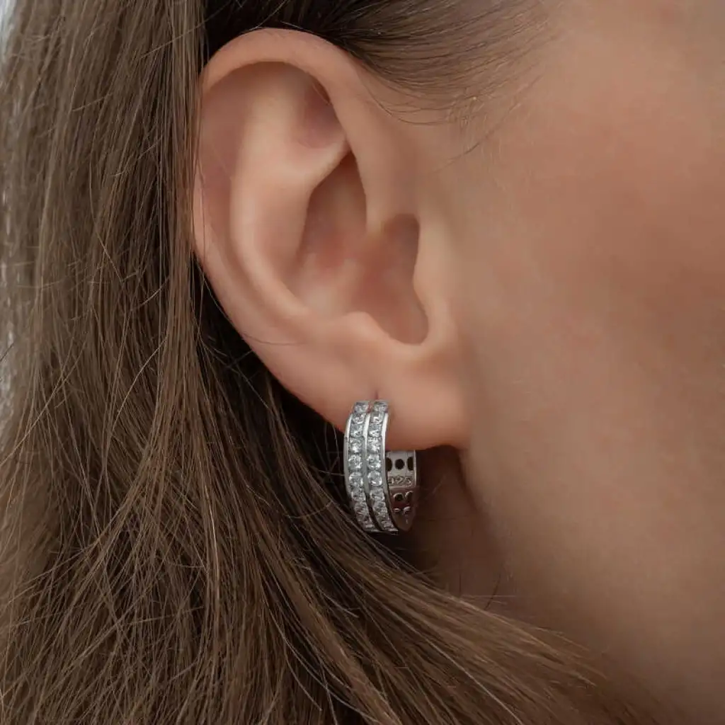 Gümüş Sıra Taşlı Halka Kadın Küpe