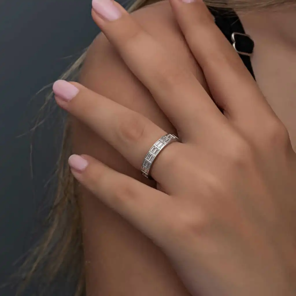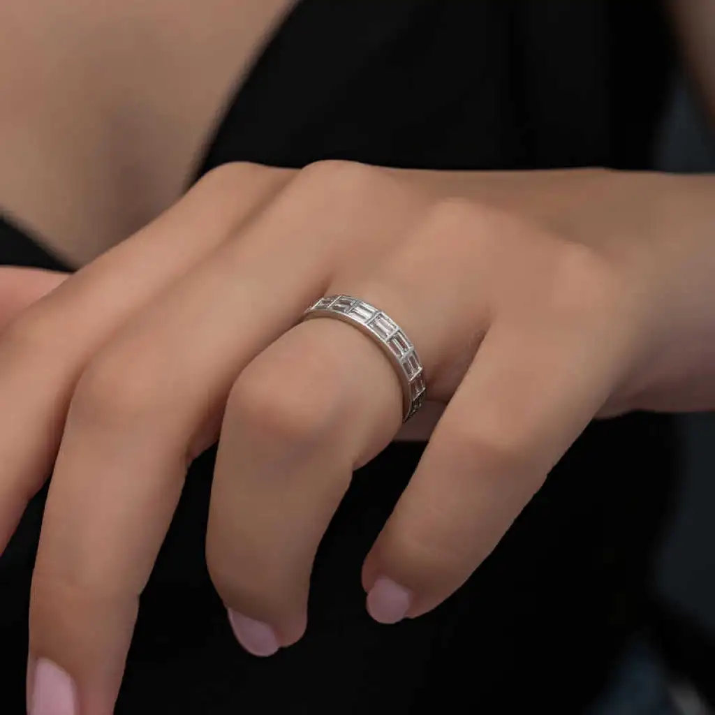 Gümüş Sıralı Baget Taşlı Kadın Yüzük