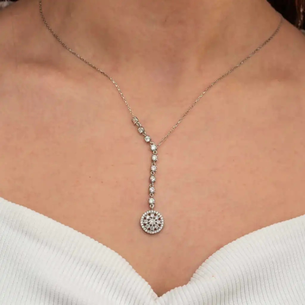 Gümüş Sıralı Zirkon Taşlı Çiçek Kadın Kolye
