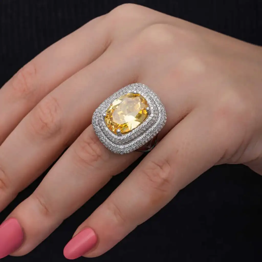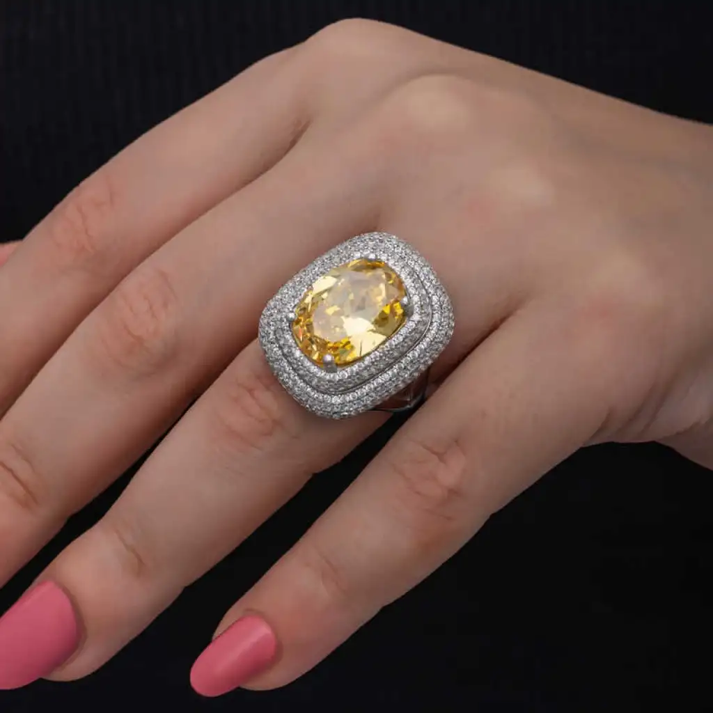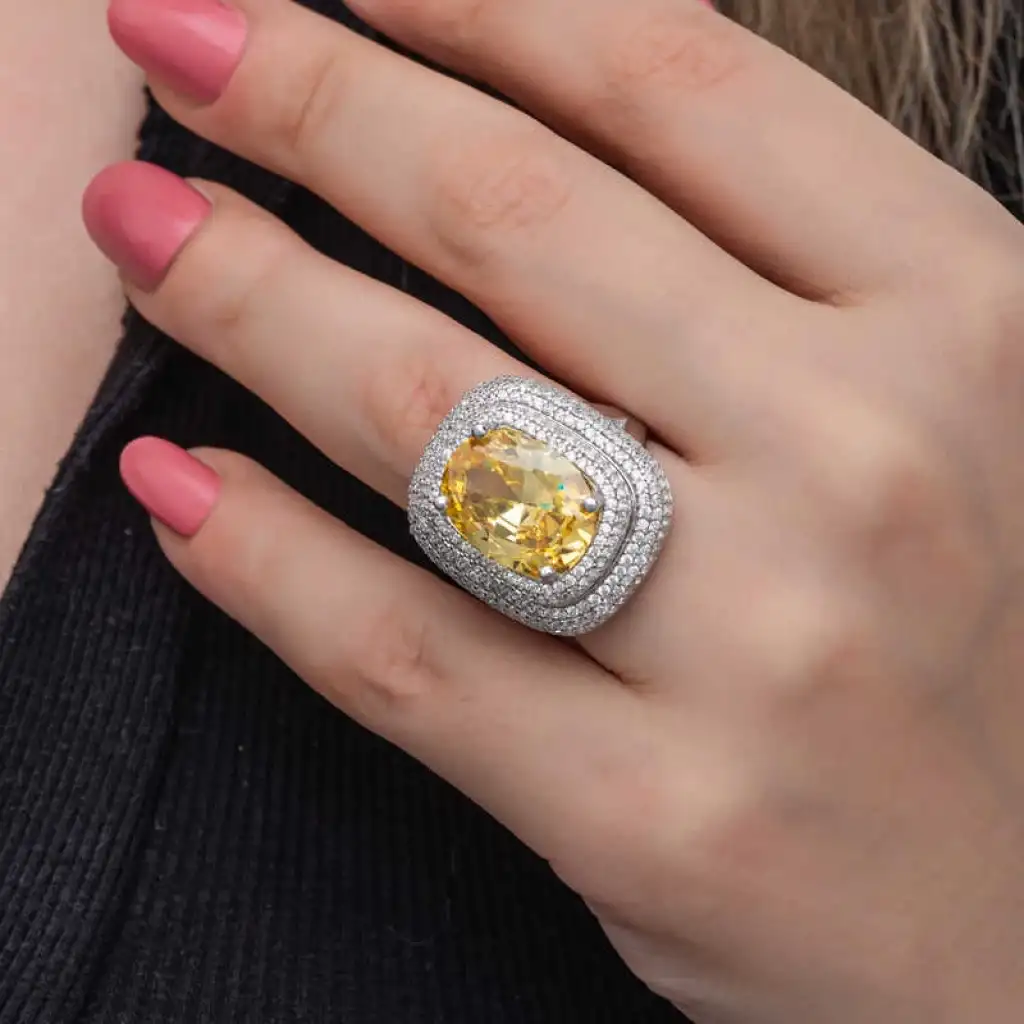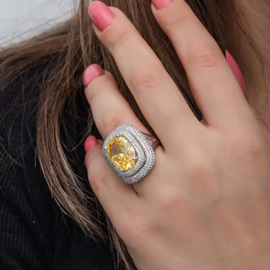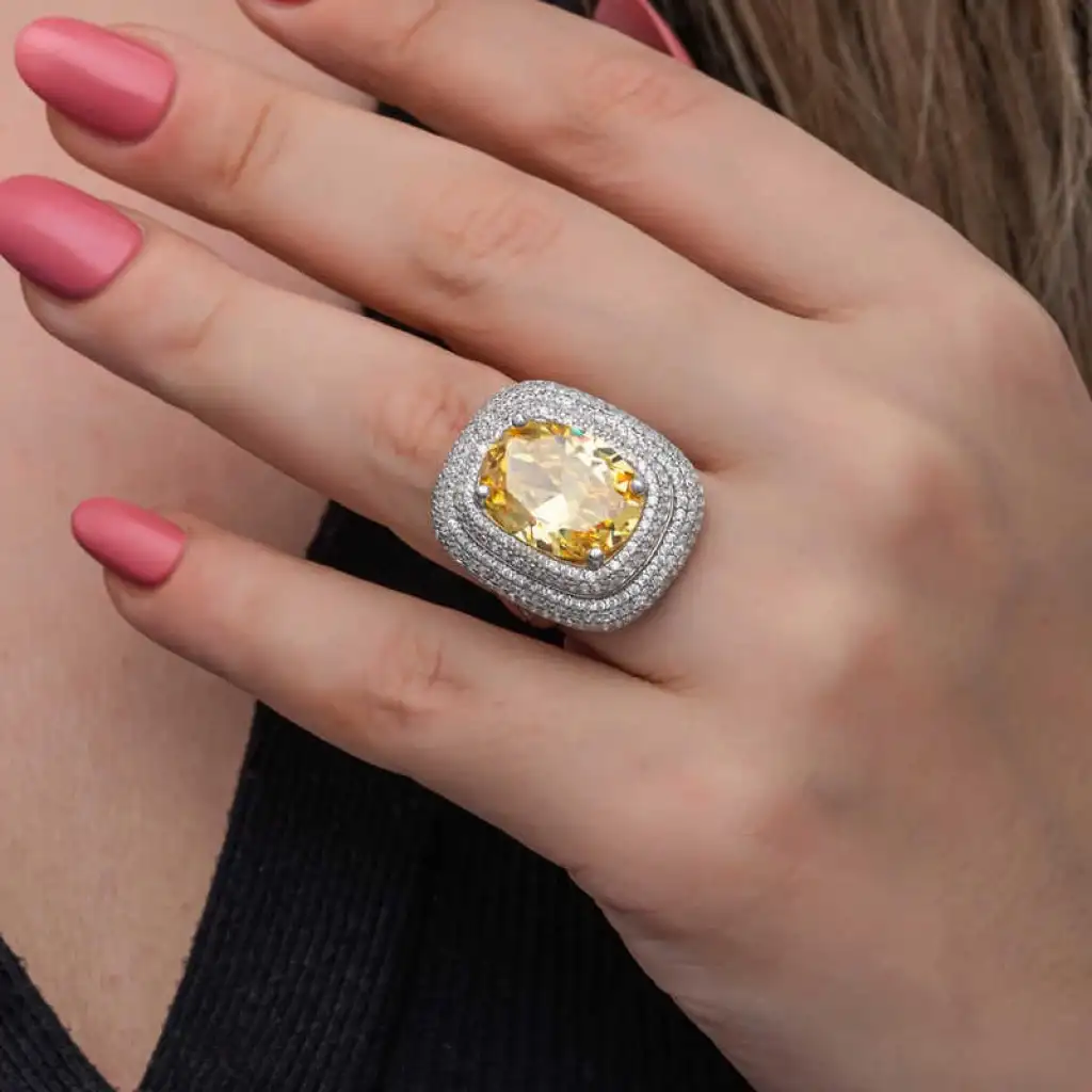 Yüzyıllardır imajınızın simgesi olan takılar, birbirinden özel tasarım koleksiyonlarda sizlerle buluşuyor. Günlük hayatınızdan özel günlerinize kadar her anınızda yanınızda olan gümüş yüzük modelleriyle sizlerde tarzınızı yansıtın. Bu birbirinden farklı dikkat çekici tasarımlar sayesinde ruhunuza hitap eden yaratıcı özgünlüğü ortaya koymaya başlayın. Hayalinizdeki kombinleri gerçeğe dönüştürebileceğiniz gümüş yüzük çeşitleri ile girdiğiniz her ortamda ilgi çekici stiliniz ile ön plana çıkmak artık çok kolay... Sitrin taşlı kadın yüzük 925 ayar gümüşten imal edilmiştir, üzerine rodyum kaplama yapılmıştır. Gümüş yüzük modellerimizin tamamı el emeği ile üretilmiştir. Gümüş ve değerli taşlar nedeniyle belirtilen ortalama ürün ağırlığında ± %10 sapma olabilmektedir.