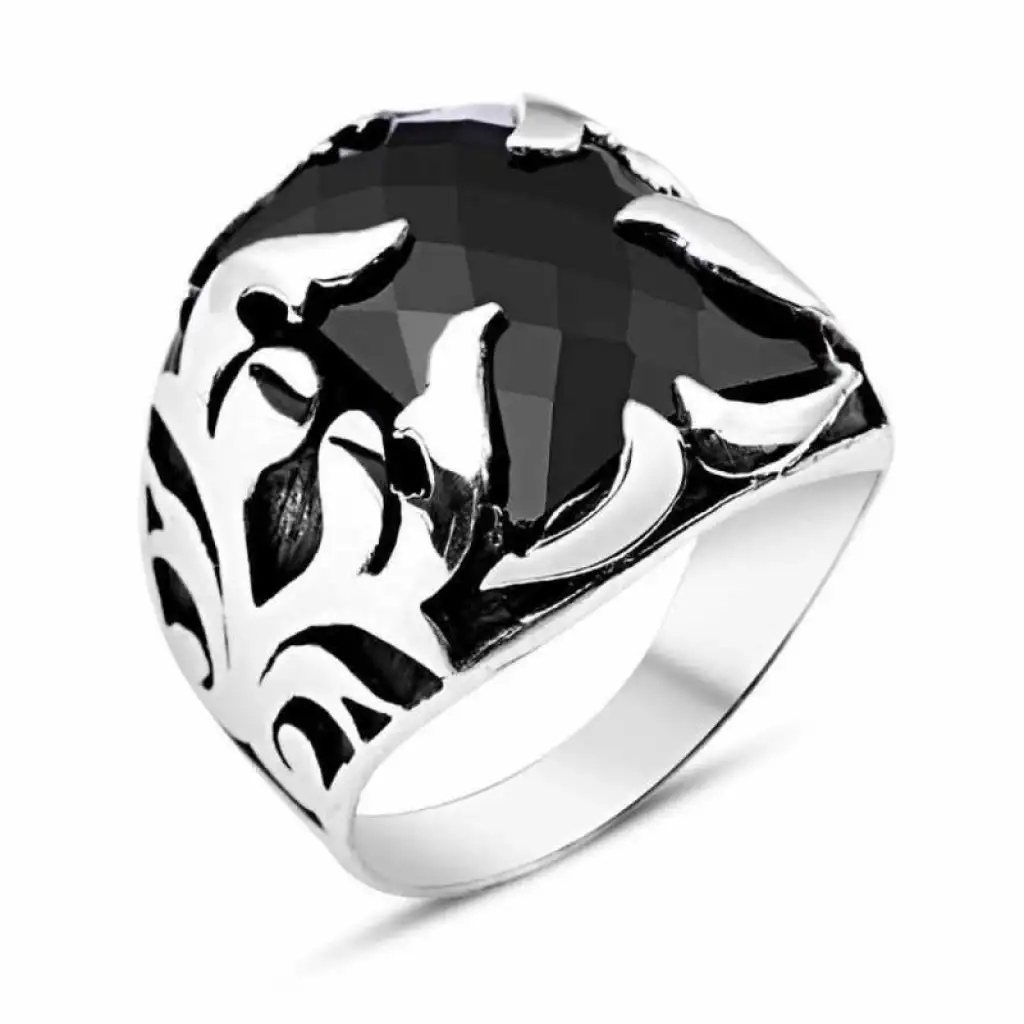 Gümüş Siyah Taşlı Alev Erkek Yüzük