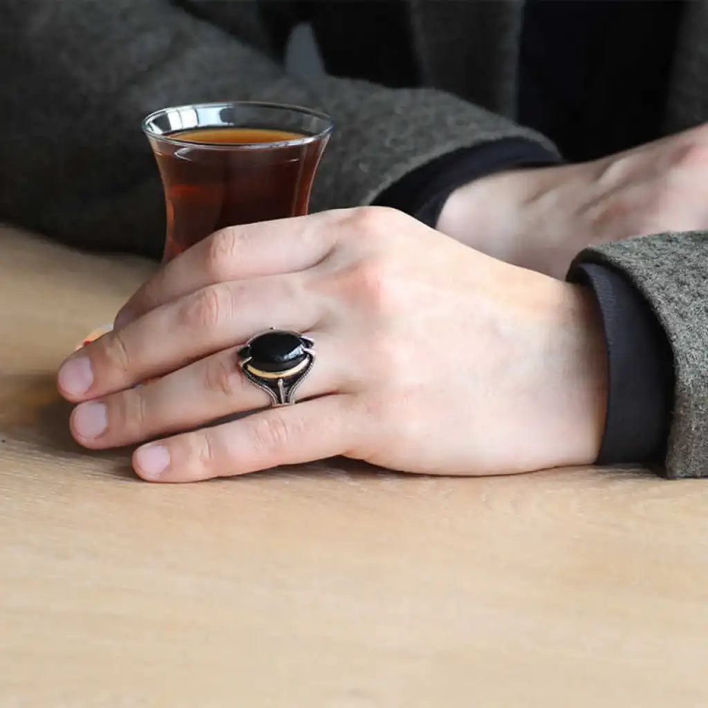 Gümüş Siyah Taşlı Kartal Pençesi Erkek Yüzük