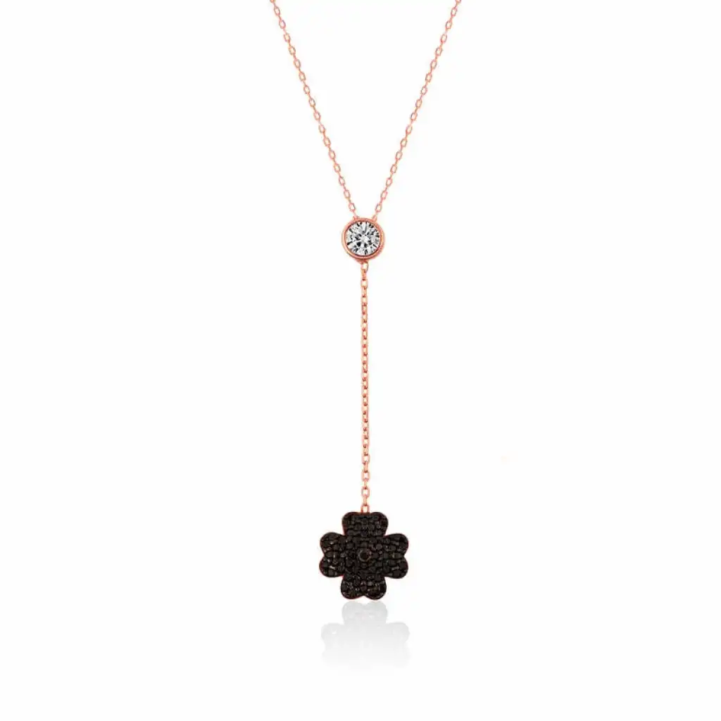 Dört yapraklı yonca bütün kültürlerde iyi şansın sembolü olarak kabul edilir. Yoncanın dört yaprağının da ayrı birer anlamı vardır. Birinci yaprak ümidi, ikincisi imanı, üçüncüsü aşkı, dördüncü yaprak ise şansı simgeler. Yoncadan oluşan özel tasarım bayan kolye modeli 925 ayar gümüşten imal edilmiştir. Bu zarif kolye hem gündelik hemde özel günlerde de tercih edebileceği çok şık bir seçenek olacaktır. Gümüş siyah yonca bayan bileklik üzerinde rose kaplama vardır. Rose kaplama yapılan gümüş bayan kolyeler parlaklığını uzun süre muhafaza eder, gümüşe pembe rengini verir. Gümüş yonca bayan kolye sizin olduğu kadar sevdiklerinizin de keyifle takacağı en güzel hediyelerden biri olacaktır. Tüm gümüş bayan kolyelerde olduğu gibi gümüş siyah yonca bayan bileklik de el emeği ile üretilmiştir. Gümüş ve değerli taşlar nedeniyle belirtilen ürün ağırlığında ± %10 sapma olabilmektedir.