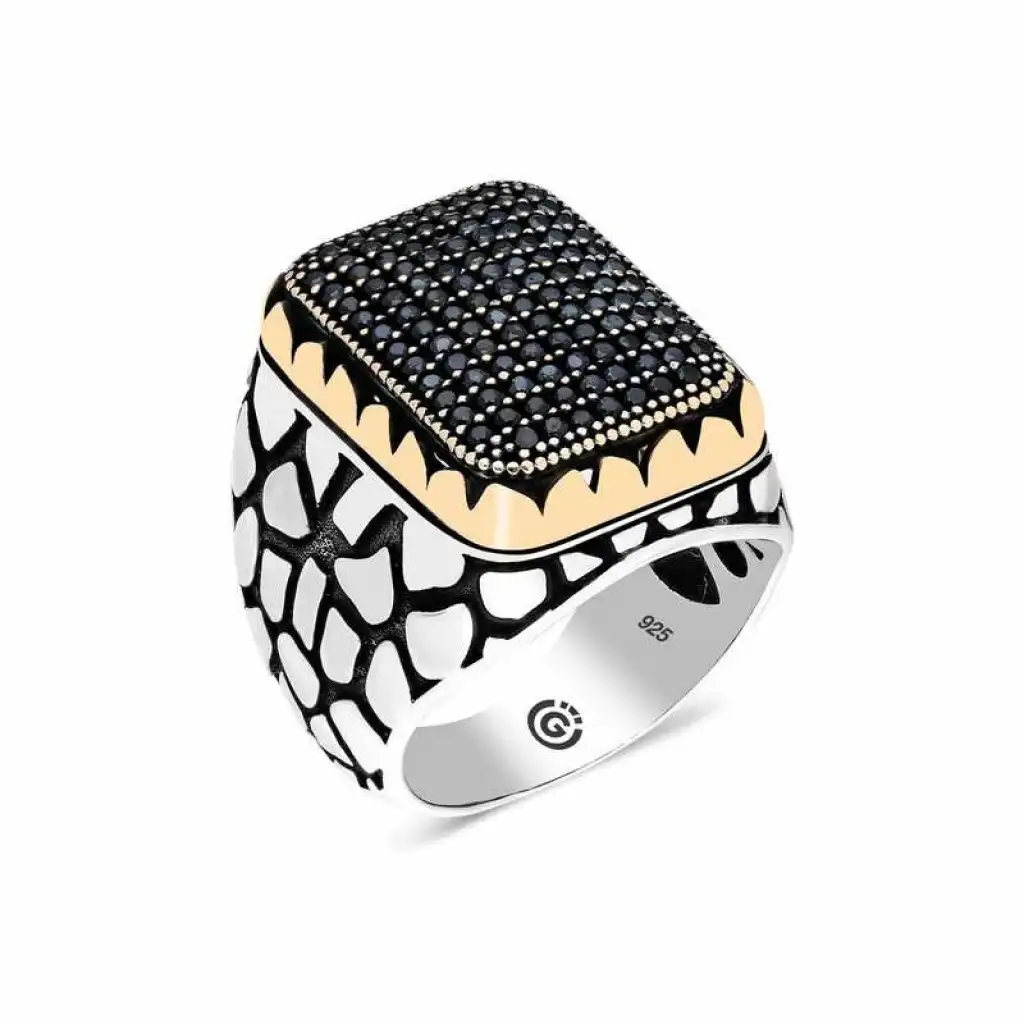 Gümüş Siyah Zirkon Taşlı Kare Erkek Yüzük