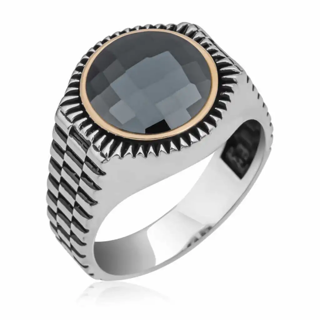Gümüş Siyah Zirkon Taşlı Yuvarlak Erkek Yüzük