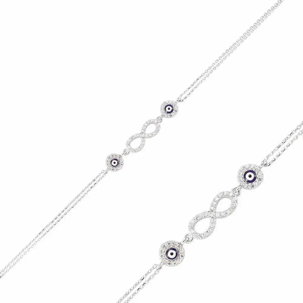 Sevgilinize sonsuz aşkı ifade etmenin en güzel, en anlamlı yollarından biri tabi ki sonsuzluk sembolüdür... Sevgilinize hediye edeceğiniz bu anlamlı gümüş bileklik ile ona olan sonsuz aşkınızı ve sevginizi ifade edebilir sonsuza kadar birlikte olacağınız mesajı verebilirsiniz. Sonsuzluk bileklik 925 ayar gümüşten imal edilmiştir. Gümüş üzerine rodyum kaplama yapılmıştır. Rodyum kaplama yapılan ürünler parlaklığını uzun süre muhafaza eder, oksitlenmesi gecikir. Gümüş sonsuzluk bayan bileklik üzerinde bulunan taşlar zirkondur. Tüm bayan bilekliklerde olduğu gibi sonsuzluk bayan bilekliğin tamamı da el emeği ile üretilmiştir. Gümüş ve değerli taşlar nedeniyle belirtilen ortalama ürün ağırlığında ± %10 sapma olabilmektedir.